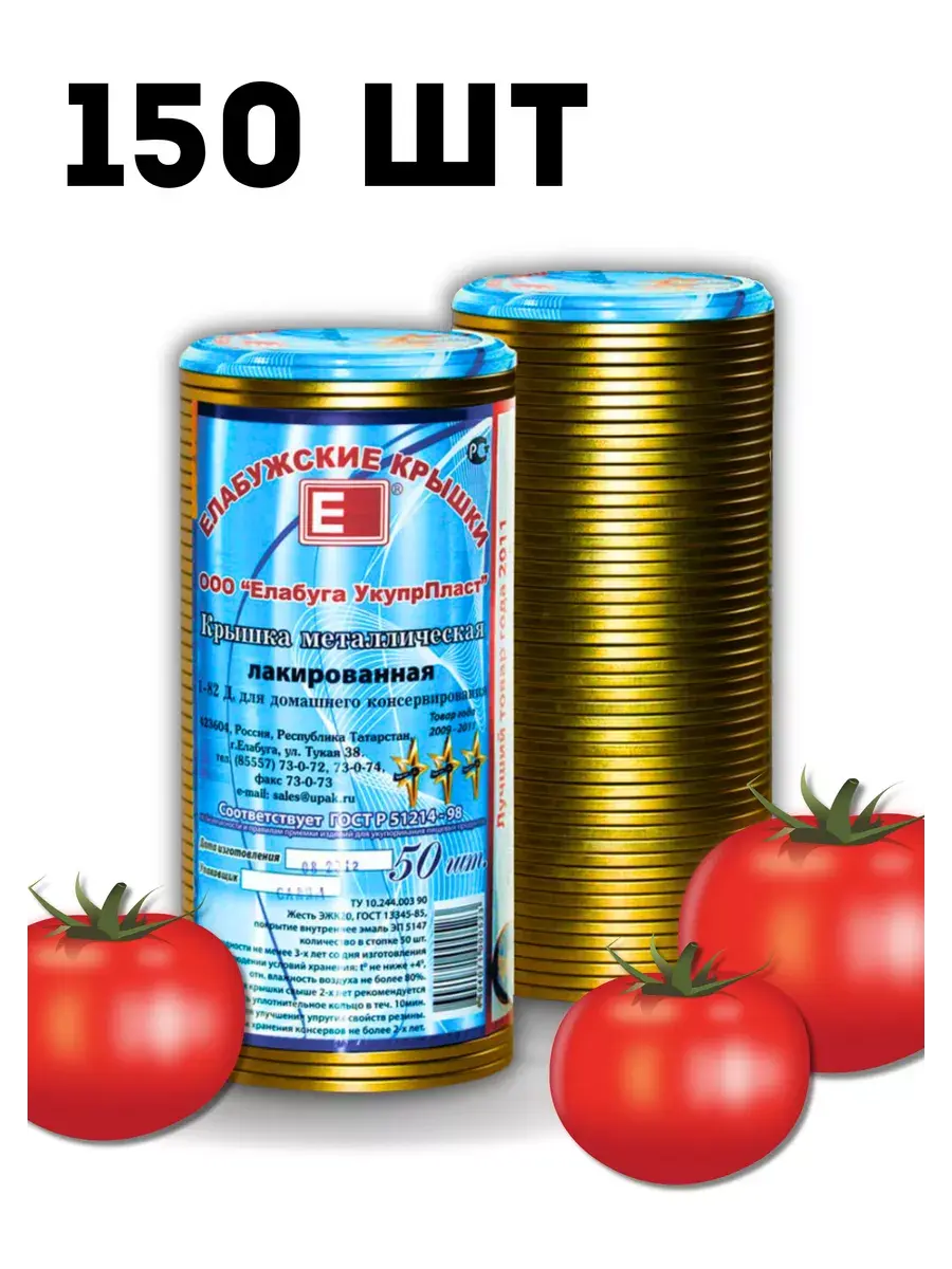 Крышки для банок металлические закаточные СКО 1-82 лак, 49+1шт. Крышки выпускаются в г. Елабуга под брендом «Елабужские крышки», изготовлены из пищевой белой жести, покрытая пищевыми лаками. полностью соответствует требованиям ГОСТ Р 51214-98, сертифицирована, прошла все необходимые санитарно-эпидемиологические исследования. Все материалы, применяемые при производстве крышки также сертифицированы. упакована в столбики по 50 шт. в термоусадочной плёнке с цветной верхней крышкой. Отлично использовать для герметичного закрытия горлышка стеклянной банки. Елабужские закаточные крышки для консервирования помогут хозяйке законсервировать любую продукцию. НЕ ПРЕДНАЗНАЧЕНЫ ДЛЯ АВТОКЛАВА! Крышки металлические для домашнего консервирования. Покрытие надежно защищает крышки от царапания во время консервирования, а так же на протяжении длительного срока препятствует образованию ржавчины при хранении консервов даже в условиях влажного погреба. Внутренняя поверхность крышек покрыта высокопрочным лаком, предназначенным для контакта с пищевыми продуктами. Это покрытие устойчиво к любым агрессивным средам (солёным, кислым, щелочным и т.п.) Заказывая Елабужские крышки для консервирования у нас Вы гарантированно получаете оригинальные крышки непосредственно с елабужского завода.