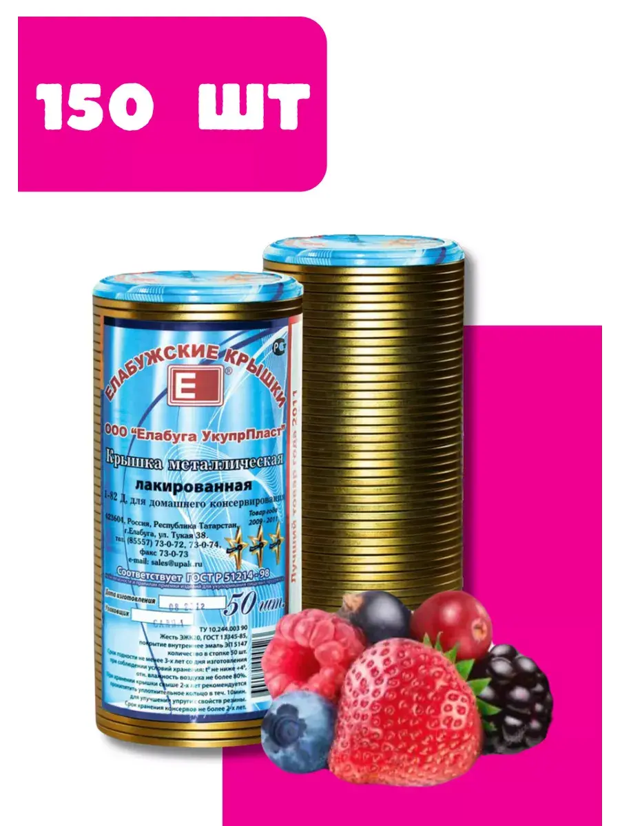 Крышки для банок металлические закаточные СКО 1-82 лак, 49+1шт. Крышки выпускаются в г. Елабуга под брендом «Елабужские крышки», изготовлены из пищевой белой жести, покрытая пищевыми лаками. полностью соответствует требованиям ГОСТ Р 51214-98, сертифицирована, прошла все необходимые санитарно-эпидемиологические исследования. Все материалы, применяемые при производстве крышки также сертифицированы. упакована в столбики по 50 шт. в термоусадочной плёнке с цветной верхней крышкой. Отлично использовать для герметичного закрытия горлышка стеклянной банки. Елабужские закаточные крышки для консервирования помогут хозяйке законсервировать любую продукцию. НЕ ПРЕДНАЗНАЧЕНЫ ДЛЯ АВТОКЛАВА! Крышки металлические для домашнего консервирования. Покрытие надежно защищает крышки от царапания во время консервирования, а так же на протяжении длительного срока препятствует образованию ржавчины при хранении консервов даже в условиях влажного погреба. Внутренняя поверхность крышек покрыта высокопрочным лаком, предназначенным для контакта с пищевыми продуктами. Это покрытие устойчиво к любым агрессивным средам (солёным, кислым, щелочным и т.п.) Заказывая Елабужские крышки для консервирования у нас Вы гарантированно получаете оригинальные крышки непосредственно с елабужского завода.