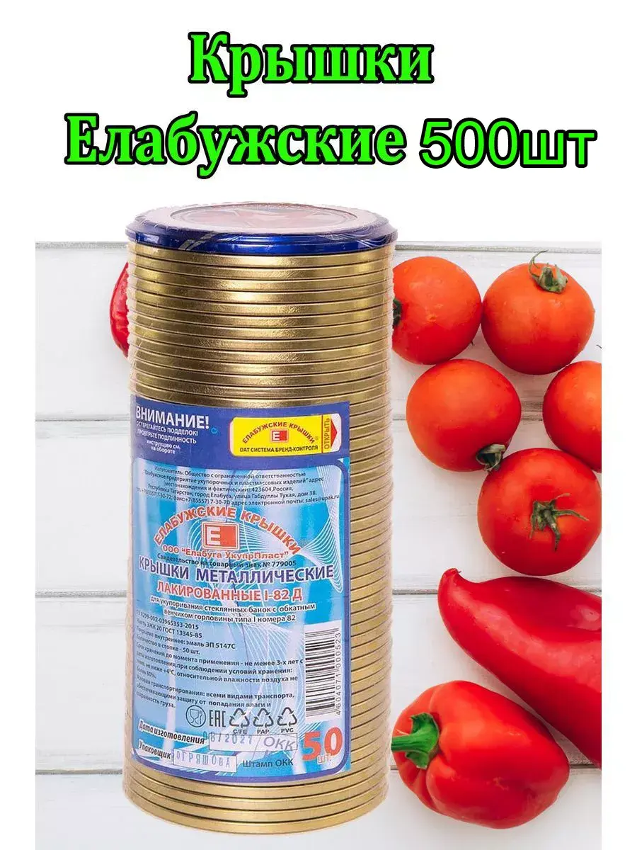 Крышки для банок металлические закаточные СКО 1-82 лак, 49+1шт. Крышки выпускаются в г. Елабуга под брендом «Елабужские крышки», изготовлены из пищевой белой жести, покрытая пищевыми лаками. полностью соответствует требованиям ГОСТ Р 51214-98, сертифицирована, прошла все необходимые санитарно-эпидемиологические исследования. Все материалы, применяемые при производстве крышки также сертифицированы. упакована в столбики по 50 шт. в термоусадочной плёнке с цветной верхней крышкой. Отлично использовать для герметичного закрытия горлышка стеклянной банки. Елабужские закаточные крышки для консервирования помогут хозяйке законсервировать любую продукцию. НЕ ПРЕДНАЗНАЧЕНЫ ДЛЯ АВТОКЛАВА! Крышки металлические для домашнего консервирования. Покрытие надежно защищает крышки от царапания во время консервирования, а так же на протяжении длительного срока препятствует образованию ржавчины при хранении консервов даже в условиях влажного погреба. Внутренняя поверхность крышек покрыта высокопрочным лаком, предназначенным для контакта с пищевыми продуктами. Это покрытие устойчиво к любым агрессивным средам (солёным, кислым, щелочным и т.п.) Заказывая Елабужские крышки для консервирования у нас Вы гарантированно получаете оригинальные крышки непосредственно с елабужского завода.