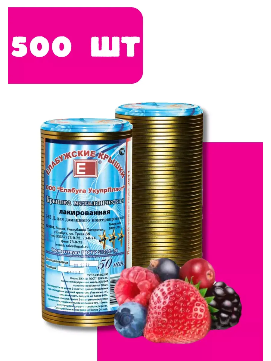 Крышки для банок металлические закаточные СКО 1-82 лак, 49+1шт. Крышки выпускаются в г. Елабуга под брендом «Елабужские крышки», изготовлены из пищевой белой жести, покрытая пищевыми лаками. полностью соответствует требованиям ГОСТ Р 51214-98, сертифицирована, прошла все необходимые санитарно-эпидемиологические исследования. Все материалы, применяемые при производстве крышки также сертифицированы. упакована в столбики по 50 шт. в термоусадочной плёнке с цветной верхней крышкой. Отлично использовать для герметичного закрытия горлышка стеклянной банки. Елабужские закаточные крышки для консервирования помогут хозяйке законсервировать любую продукцию. НЕ ПРЕДНАЗНАЧЕНЫ ДЛЯ АВТОКЛАВА! Крышки металлические для домашнего консервирования. Покрытие надежно защищает крышки от царапания во время консервирования, а так же на протяжении длительного срока препятствует образованию ржавчины при хранении консервов даже в условиях влажного погреба. Внутренняя поверхность крышек покрыта высокопрочным лаком, предназначенным для контакта с пищевыми продуктами. Это покрытие устойчиво к любым агрессивным средам (солёным, кислым, щелочным и т.п.) Заказывая Елабужские крышки для консервирования у нас Вы гарантированно получаете оригинальные крышки непосредственно с елабужского завода.