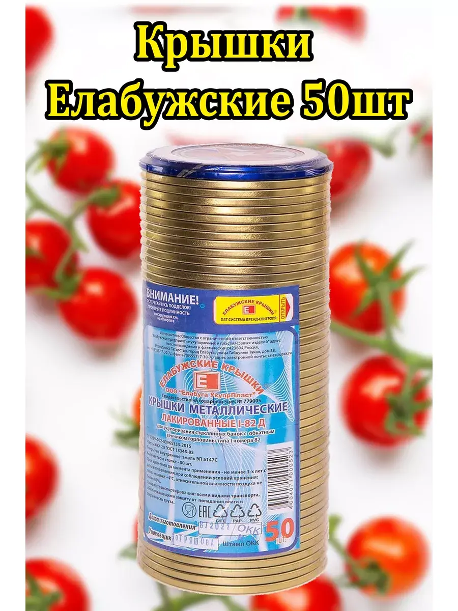 Крышки для банок металлические закаточные СКО 1-82 лак, 49+1шт. Крышки выпускаются в г. Елабуга под брендом «Елабужские крышки», изготовлены из пищевой белой жести, покрытая пищевыми лаками. полностью соответствует требованиям ГОСТ Р 51214-98, сертифицирована, прошла все необходимые санитарно-эпидемиологические исследования. Все материалы, применяемые при производстве крышки также сертифицированы. упакована в столбики по 50 шт. в термоусадочной плёнке с цветной верхней крышкой. Отлично использовать для герметичного закрытия горлышка стеклянной банки. Елабужские закаточные крышки для консервирования помогут хозяйке законсервировать любую продукцию. НЕ ПРЕДНАЗНАЧЕНЫ ДЛЯ АВТОКЛАВА! Крышки металлические для домашнего консервирования. Покрытие надежно защищает крышки от царапания во время консервирования, а так же на протяжении длительного срока препятствует образованию ржавчины при хранении консервов даже в условиях влажного погреба. Внутренняя поверхность крышек покрыта высокопрочным лаком, предназначенным для контакта с пищевыми продуктами. Это покрытие устойчиво к любым агрессивным средам (солёным, кислым, щелочным и т.п.) Заказывая Елабужские крышки для консервирования у нас Вы гарантированно получаете оригинальные крышки непосредственно с елабужского завода.