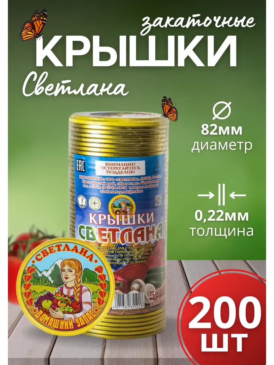 Крышки для консервирования Светлана СКО 82мм – это надежный и удобный способ сохранить ваши домашние заготовки на долгий срок. Изготовленные из высококачественного материала, крышки обеспечивают герметичное закрытие банок, защищая содержимое от воздуха и влаги. Универсальный размер 82 мм подходит для большинства стандартных банок, что делает их идеальным выбором для консервирования овощей, фруктов, варенья и других домашних заготовок.