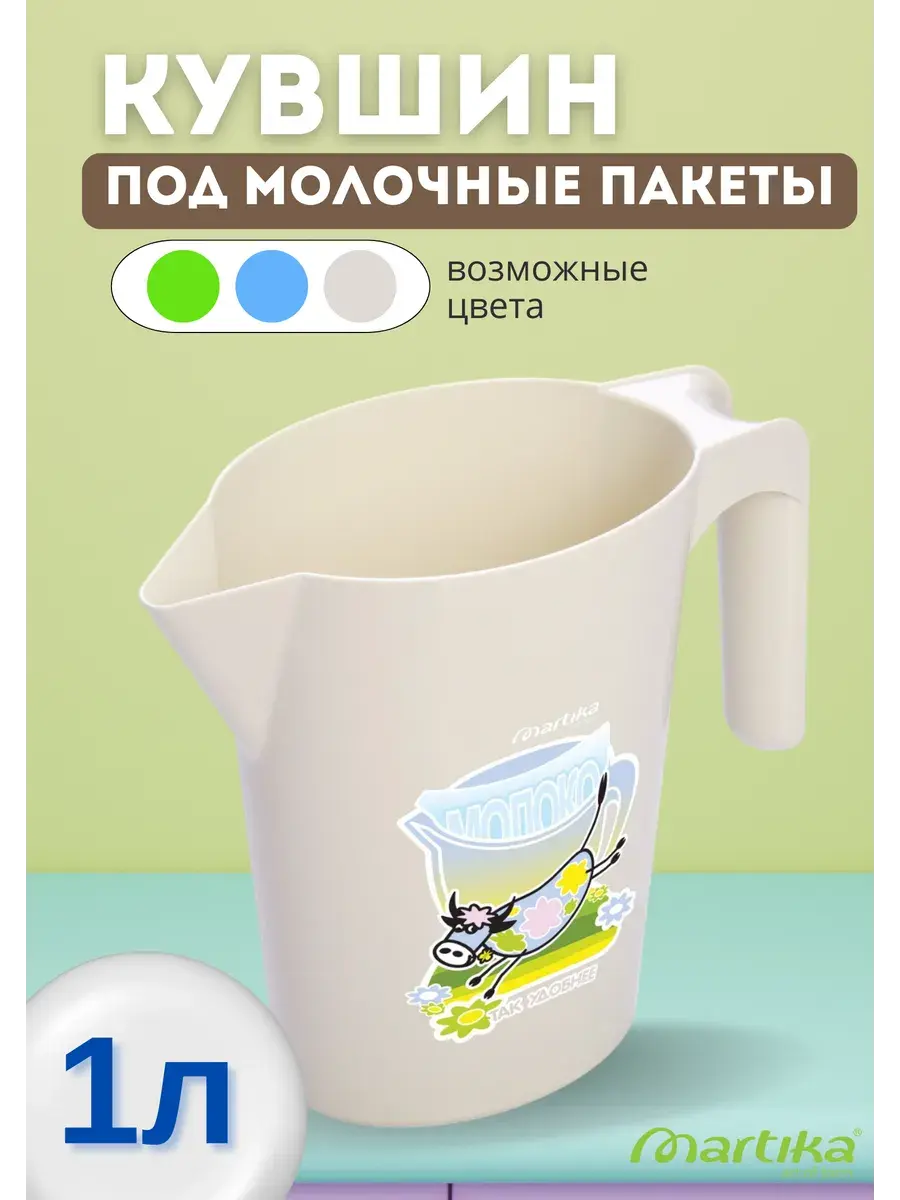 Кувшин-подставка служит для удобного хранения открытых молочных пакетов объемом более 1л. Он свободно помещается на боковой полке дверцы холодильника, как по высоте, так и по ширине. Конструкция кувшина сделана так, что пакет не нужно придерживать, когда наливаешь молоко в кружку. Пластиковый кувшин легко мыть, в т.ч. в посудомоечной машине, материал не подвержен выгоранию, стойко переносит механические воздействия.