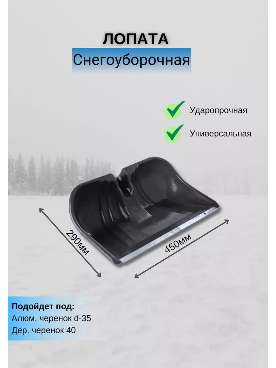 Лопата для уборки снега (снеговая) пластиковая №5 с алюмин. планкой (под алюм.черенок, d-35, под дер.черенок 40) [450*290] - это надежный и удобный инструмент для уборки снега. Лопата изготовлена из ударопрочного пластика, что обеспечивает ее долговечность и устойчивость к низким температурам. Благодаря эргономичному черенку, лопатой легко работать, не перегружая спину. Стальной наконечник на лопате помогает легко проникать в твердый снег, а дополнительные ребра жесткости делают лопату более прочной и долговечной.