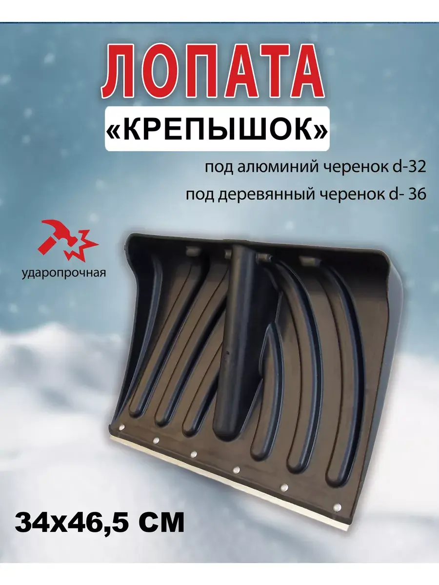 Лопата для уборки снега (снеговая) пластиковая КРЕПЫШОК с оцинков. планкой (под алюм.черенок, d-32, под дер.черенок 36) [465*340]. Лопата для снега - это практичный и эффективный инструмент, разработанный специально для уборки снега. Ее компактный размер и удобная форма позволяют легко и быстро очистить тротуары, дорожки и другие области от накопленного снега. Лопата изготовлена из прочного и прочного материала, что обеспечивает ее надежность и долговечность. Острая кромка позволяет эффективно справляться с различными типами снега, включая снежные заносы. Без ручки, она обеспечивает удобство хранения и транспортировки, а также позволяет использовать любую подходящую длину ручки по вашему выбору. Эта лопата для снега - ваш незаменимый помощник в борьбе со снежной погодой!