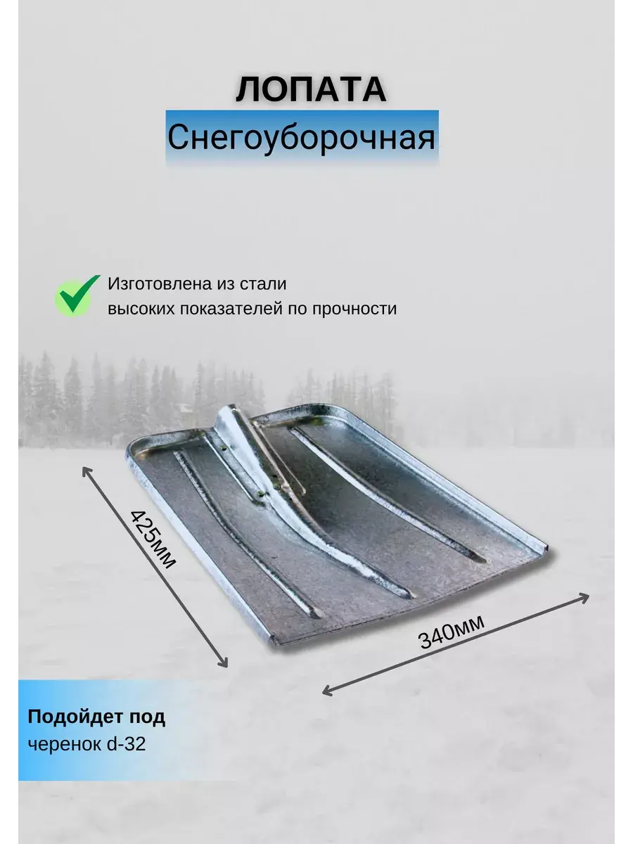 Лопата для уборки снега (снеговая) оцинкованная Лысьва (под черенок 32) [340*425].Снегоуборочная лопата в сборе размером 42,5x34 см - это удобный и эффективный инструмент для уборки снега. Она изготовлена из качественных материалов, что гарантирует ее долговечность и надежность. На конце лопаты имеется стальной наконечник, который помогает легко проникать в плотный снег.