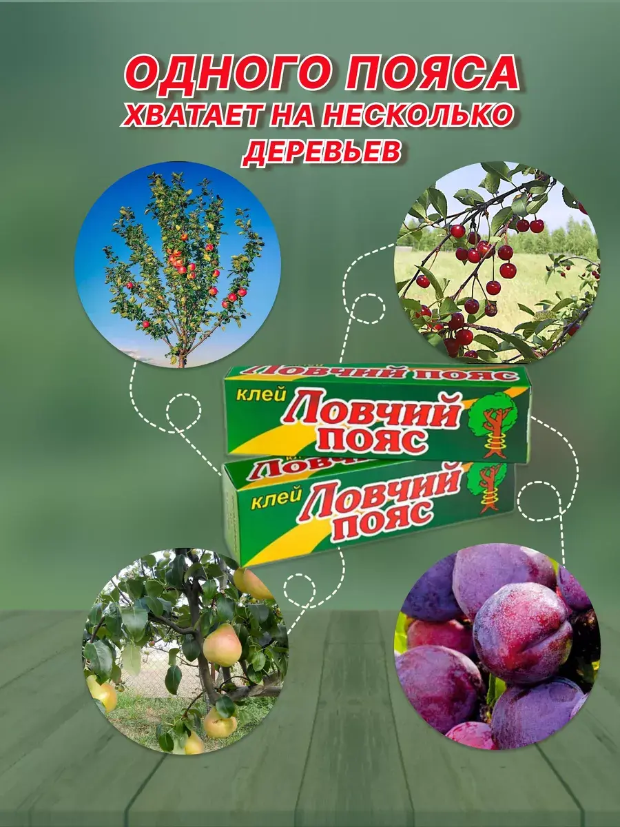 Ловчий пояс клей подходит для использования на различных видах плодовых и декоративных деревьев, включая яблони, груши, вишни, сливы, хвойные деревья и многие другие.