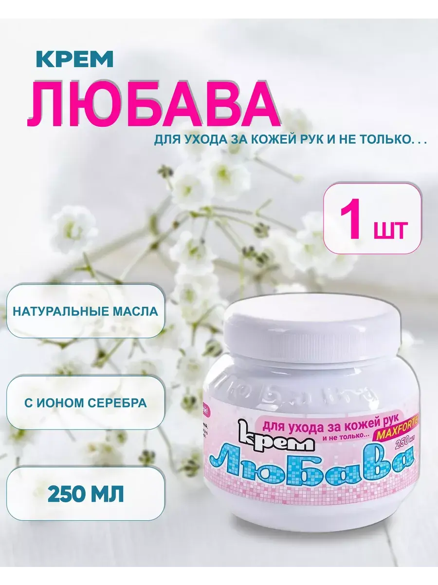 Крем Любава MAXFORTE насыщен ионами серебра, которые способны проникать в глубокие слои эпидермиса, нормализуя работу сальных желез и улучшая микроциркуляцию крови. В составе этого крема натуральные экстракты (ромашки, конского каштана, свеклы и календулы) и масла (масло ши, миндальное, пальмовое и соевое), они питают кожу, оказывают противовоспалительное, регенерирующее действие. Коллаген, входящий в состав крема Любава MAXFORTE, поддерживает эластичность кожи и предотвращает ее преждевременное старение, питает и увлажняет, устраняет сухость и шелушение, придает коже здоровый и ухоженный вид. Для ежедневного ухода за кожей рук и не только. Натуральные растительные масла, входящие в крем, насыщены витаминами молодости - A, E, F и D, которые отлично тонизируют кожу, дарят ей свежесть и сияние. Полезные жирные кислоты, микро- и макроэлементы в составе масел способствуют правильному функционированию клеток. Не содержит ароматизирующих отдушек и не перебивает аромат используемого парфюма. Способ применения: небольшое количество крема нанести на чистую, сухую кожу легкими массирующими движениями до полного впитывания.