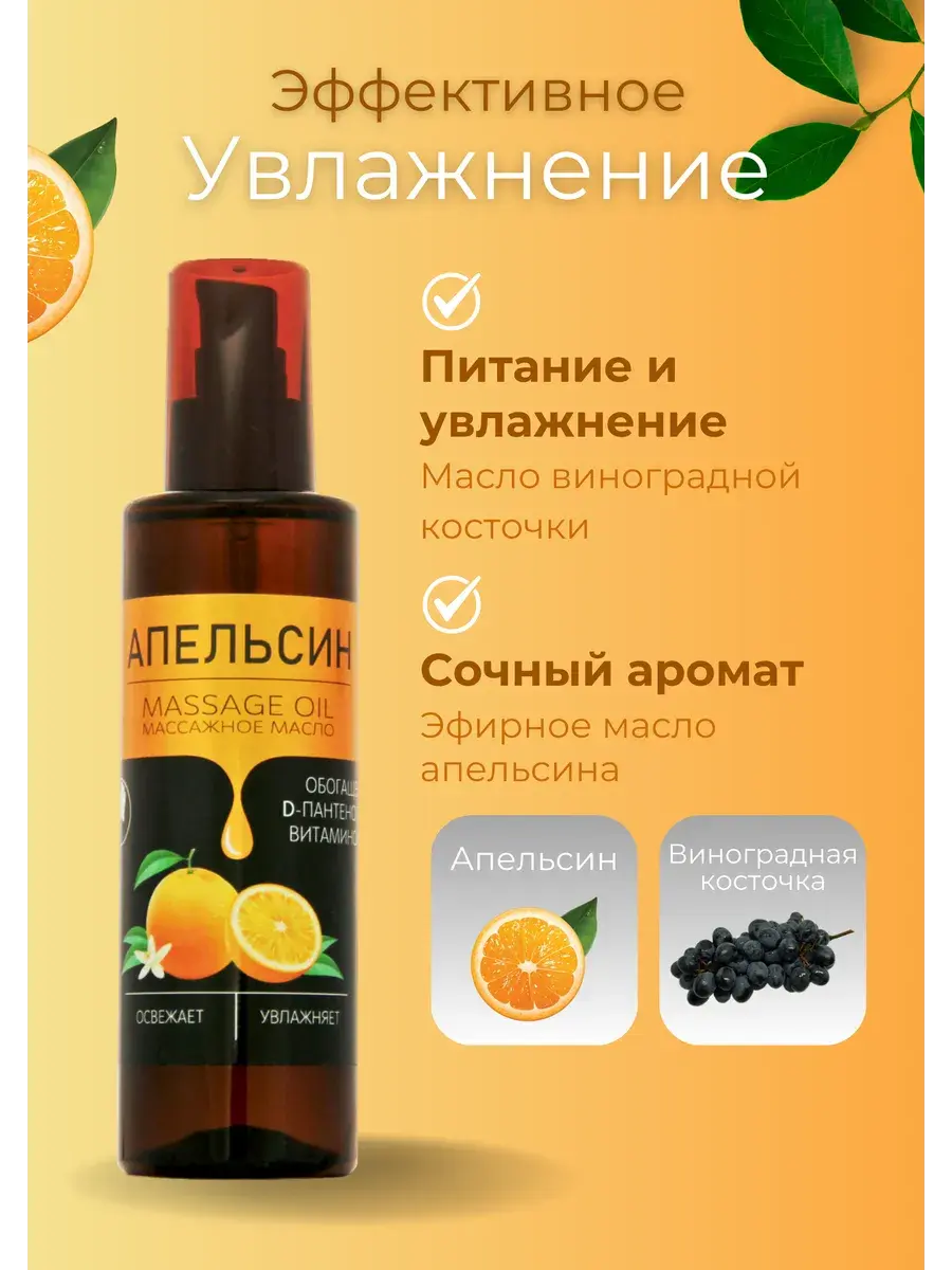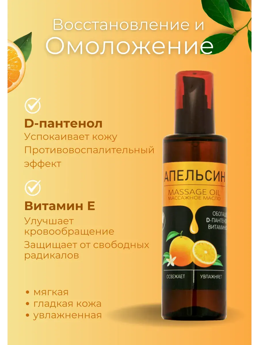 Откройте для себя масло для массажа тела на основе натурального эфирного масла апельсина, которое подарит вам неповторимое удовольствие и уход за кожей. Это массажное масло содержит D-пантенол и витамин E, известные своими увлажняющими свойствами и способностью питать кожу, помогая предотвращать растяжки.