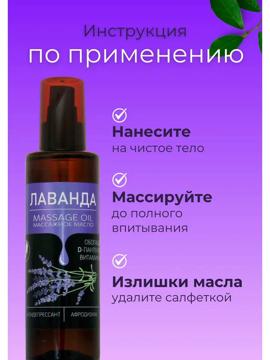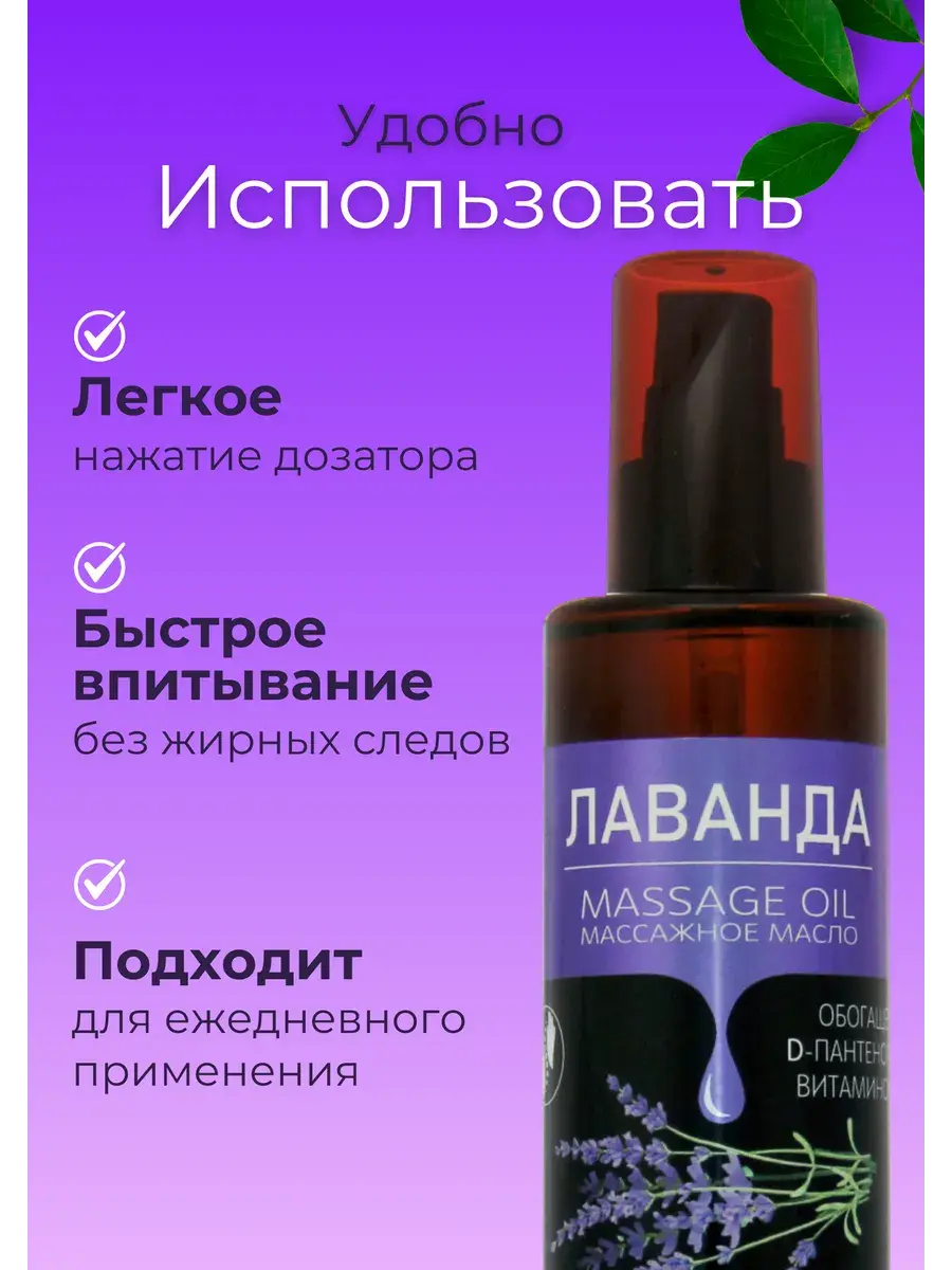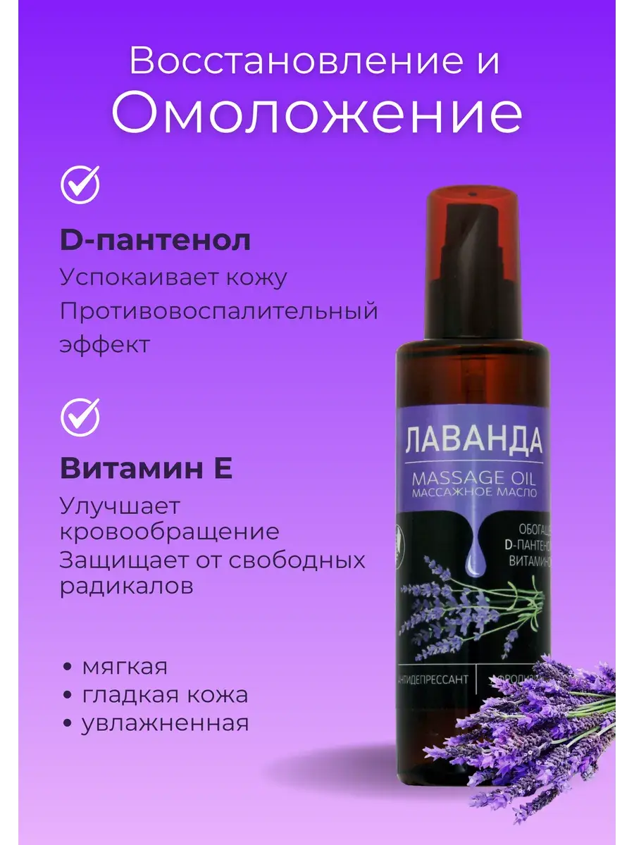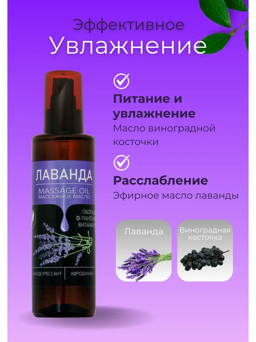 Натуральное масло, которое содержит масла виноградной косточки, масло рапсовое, эфирное масло лаванды, D- пантенол и витамин Е.