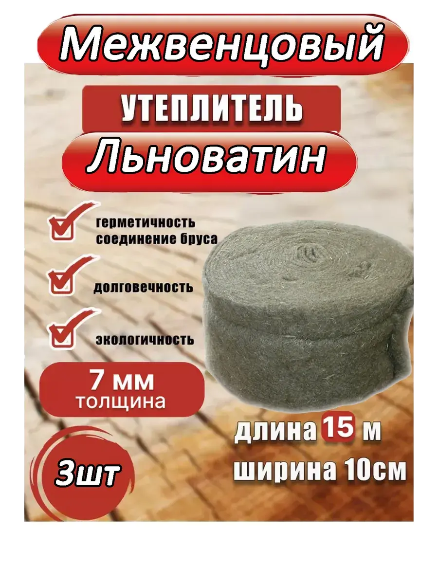 Межвенцовый утеплитель Льноватин предназначен для заделки швов между брусьями или бревнами. Пакля для сруба удерживает тепло и не допускает продувания стен сруба. Этот ленточный утеплитель изготовлен из экологически чистого сырья - льноватина. Преимущества: экономичный расход.Джутовый межвенцовый утеплитель (льноватин) производится иглопробивным способом, Межвенцовый утеплитель получается более плотным и однородным по толщине, чем пакля. Полученное таким образом полотно разрезается на ленты различной ширины, необходимой для утепления рубленных и брусовых деревянных домов. Льноватин утеплитель для бани и деревянного дома применяется для уплотнения межвенцовых пазов при сборке бревенчатых или брусчатых стен, оконных дверных коробок и косяков, без применения конопатных работ.