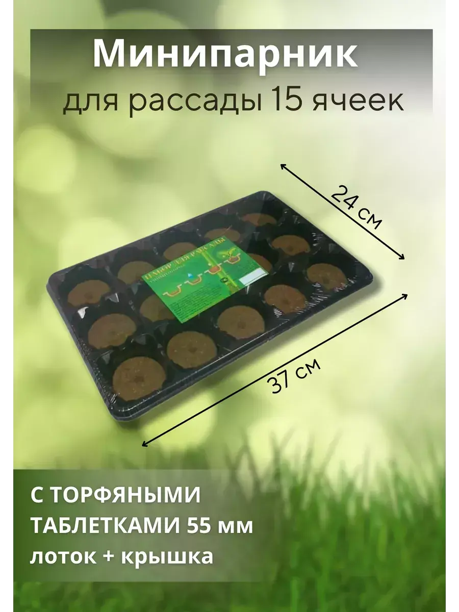 Мини-парник для выращивания рассады с 15 ячейками и торфяными таблетками диаметром 55 миллиметров, с прозрачной пластиковой крышкой для поддержания оптимальных условий влажности и температуры. Идеально подходит для ранней посадки и выращивания разнообразных растений в домашних условиях. Включает в себя необходимое количество торфяных таблеток для прямой посадки в них семян без необходимости пересадки растений в отдельные горшки. Минипарник для рассады - это настоящий подарок для хозяйки! С ним вырастить рассаду - проще некуда. Он представляет собой лоток, в который вложена кассета с торфяными таблетками для высадки семян. В комплекте минипарник на 15 ячеек с прозрачной крышкой . Если Вы вдруг сломали или потеряли крышку - просто накройте пленкой или пакетом. Предназначен для выращивания рассады овощных и цветочных культур, а также для черенкования. Набор идеально подойдет для подготовки к посевному сезону! Уже совсем скоро придет пора высаживать саженцы и рассаду к дачному и огородному сезону.Выращенное в мини-парниках для рассады растение или цветок почти не подвержено болезням и очень жизнеспособно за счет качественного обеззараженного грунта, используемого при производстве торфяных таблеток. Мини-парник для выращивания рассады, укомплектованный торфяными таблетками, настоящий помощник для садовода-любителя и профессионала. Мини парник — настоящий помощник садовода. Обеспечивает семенам и молодым черенкам наилучшие условия, что благотворно сказывается на их росте и развитии. В связи с малыми размерами помещается даже на подоконнике, мини тепличка очень практична и удобна в использовании. Мини парник, рассада,набор для рассады,для дачи,сад,огород,овощи,цветы,семена.
