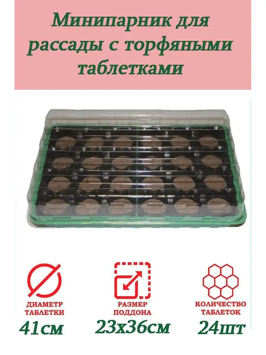 Мини-парник с торфяными таблетками d41мм, 24 таблетки, 1 комплект