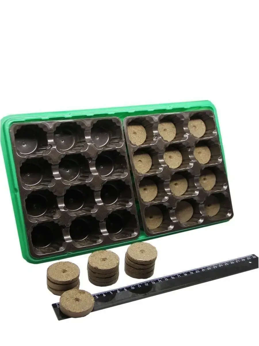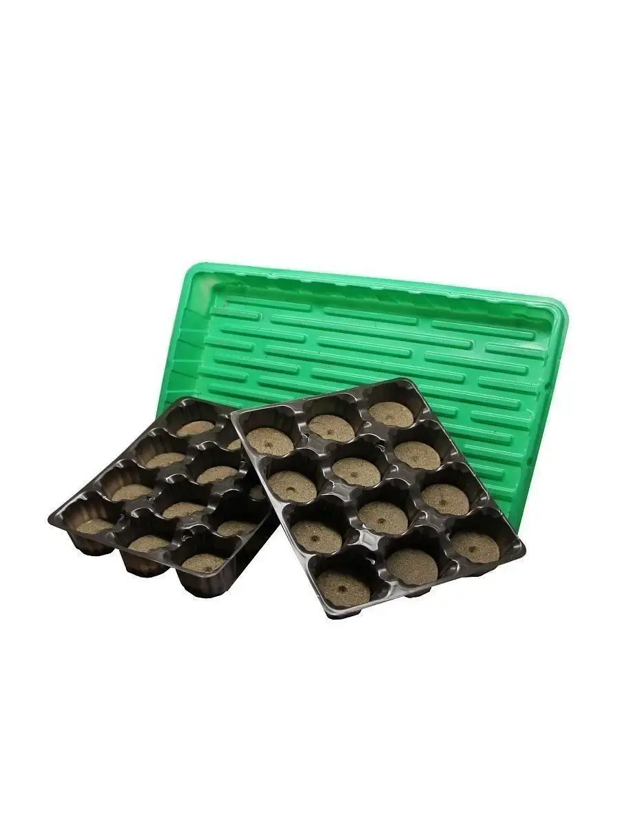 Кассета для рассады с торфяными таблетками, полностью готовый к применению. Не требует дополнительных расходов на покупку грунта, стаканчиков, поддонов, все в комплекте!