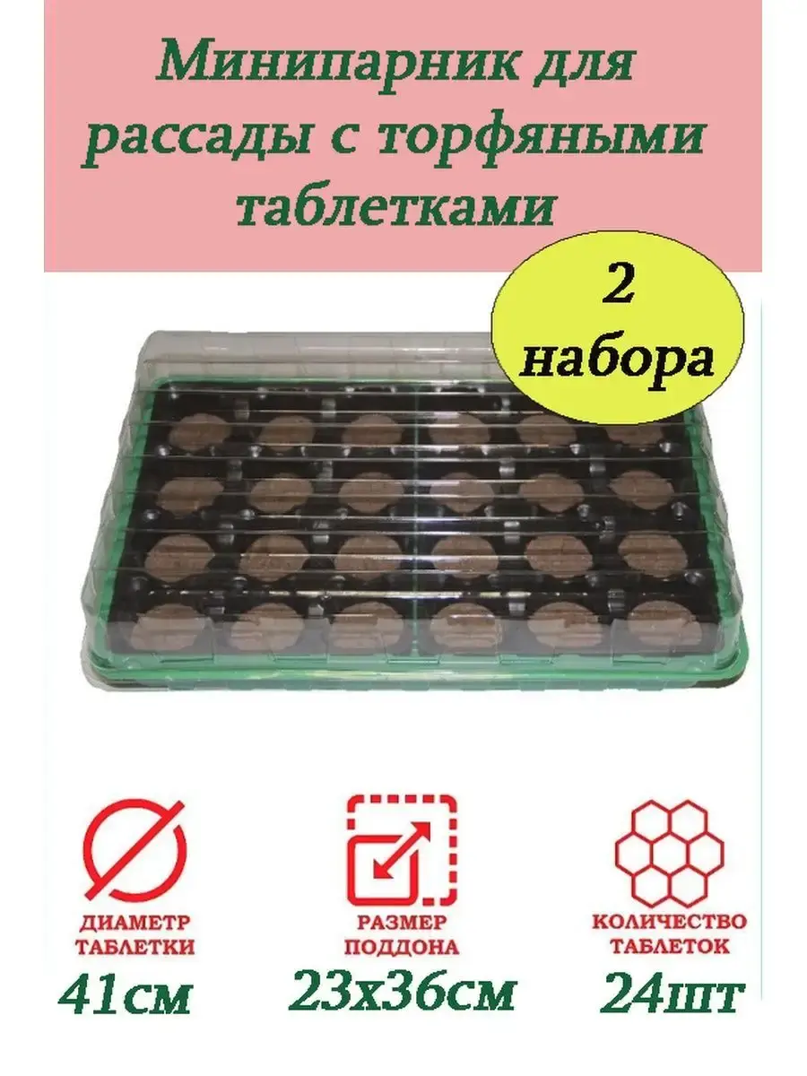 Мини-парник с торфяными таблетками d41мм, 24 таблетки, 1 комплект