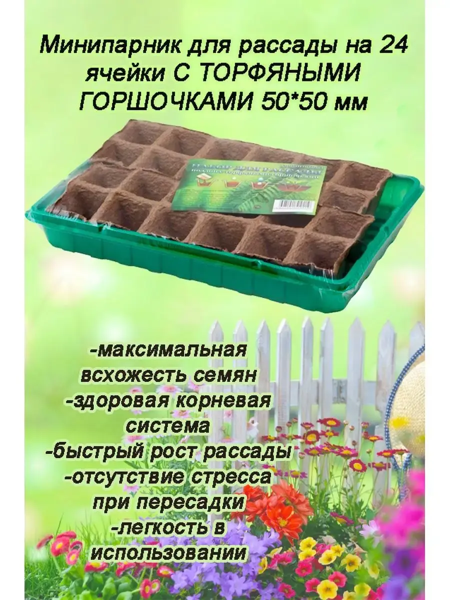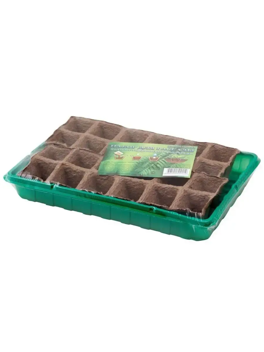 Минипарник для рассады на 24 ячейки С ТОРФЯНЫМИ ГОРШОЧКАМИ 50*50 мм , набор лоток с торфяными горшочками — готовое решение для выращивания мелкосемянных овощных и цветочных культур - универсальный, вместительный вариант. Торфяные горшочки незаменимы при выращивании и высадке рассады в открытый грунт, защищают корни растений от повреждения. Поддон собирает лишнюю влагу и помогает содержать в чистоте подоконник. Минипарник состоит из: -торфяные горшочки - представляют собой комплект взаимно связанных горшочков из торфа для рассады. Они имеют оптимальный размер для полноценного развития корневой системы. Предназначен для выращивания рассады овощных и цветочных культур, а также для черенкования. - Лоток - поможет компактно хранить рассаду в одном месте. Имеет специальные рёбра для отведения излишков влаги. Обеспечивает устойчивость и комфортное перемещение вашей рассады. Насыщенный зелёный цвет позволит различать посадки, даёт возможность аккуратно подписать лоток любым контактным маркером. Компактные размеры позволяют ставить набор на подоконник, а качественный пластик — использовать набор для выращивания рассады в течение нескольких сезонов, что сэкономит ваши средства. Комплект для выращивания рассады — настоящий помощник как садовода-любителя, так и профессионала.