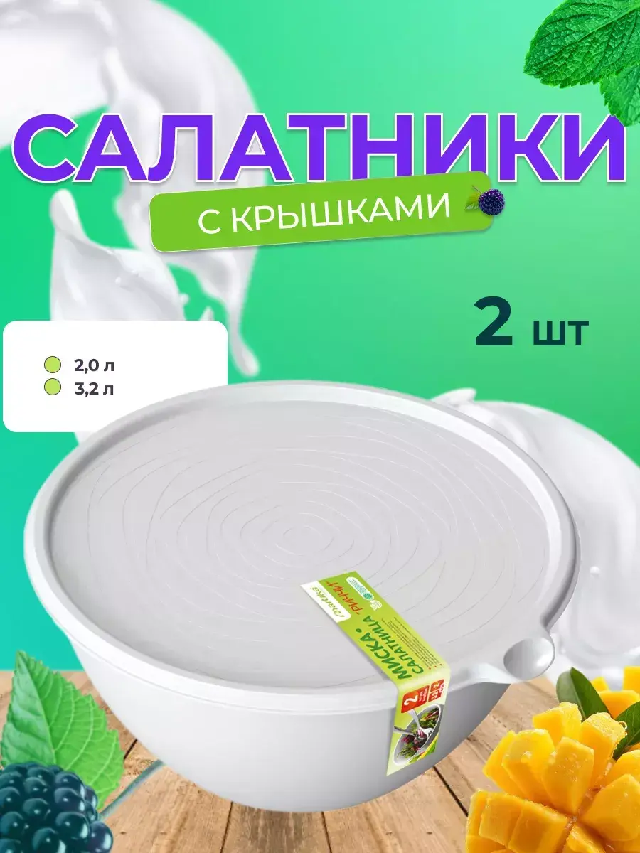 С набором мисок-салатниц "Риччи" от Martika вы можете быть уверены, что все продукты будут сохранены свежими и вкусными. Этот стильный набор включает в себя две миски, 2л и 3,2л, с плотными крышками, которые надежно защищают содержимое от воздуха и пыли. Набор идеально подходит для хранения и приготовления различных блюд на кухне. Салатники выполнены из качественного пищевого пластика, который не имеет вкуса и запаха, и легко моется в посудомоечной машине. Удобные размеры мисок и их компактность позволяют хранить набор в любом уголке кухни, экономя место. Кроме того, миски-салатницы "Риччи" имеют удобный клапан на крышке, который облегчает открывание, и могут использоваться в микроволновой печи. Также, при использовании в СВЧ с плотно закрытой крышкой, рекомендуется не закрывать крышку плотно, чтобы избежать возможного забрызгивания. Стильный и современный дизайн сделает набор мисок-салатниц "Риччи" от Martika идеальным подарком для любой хозяйки.
