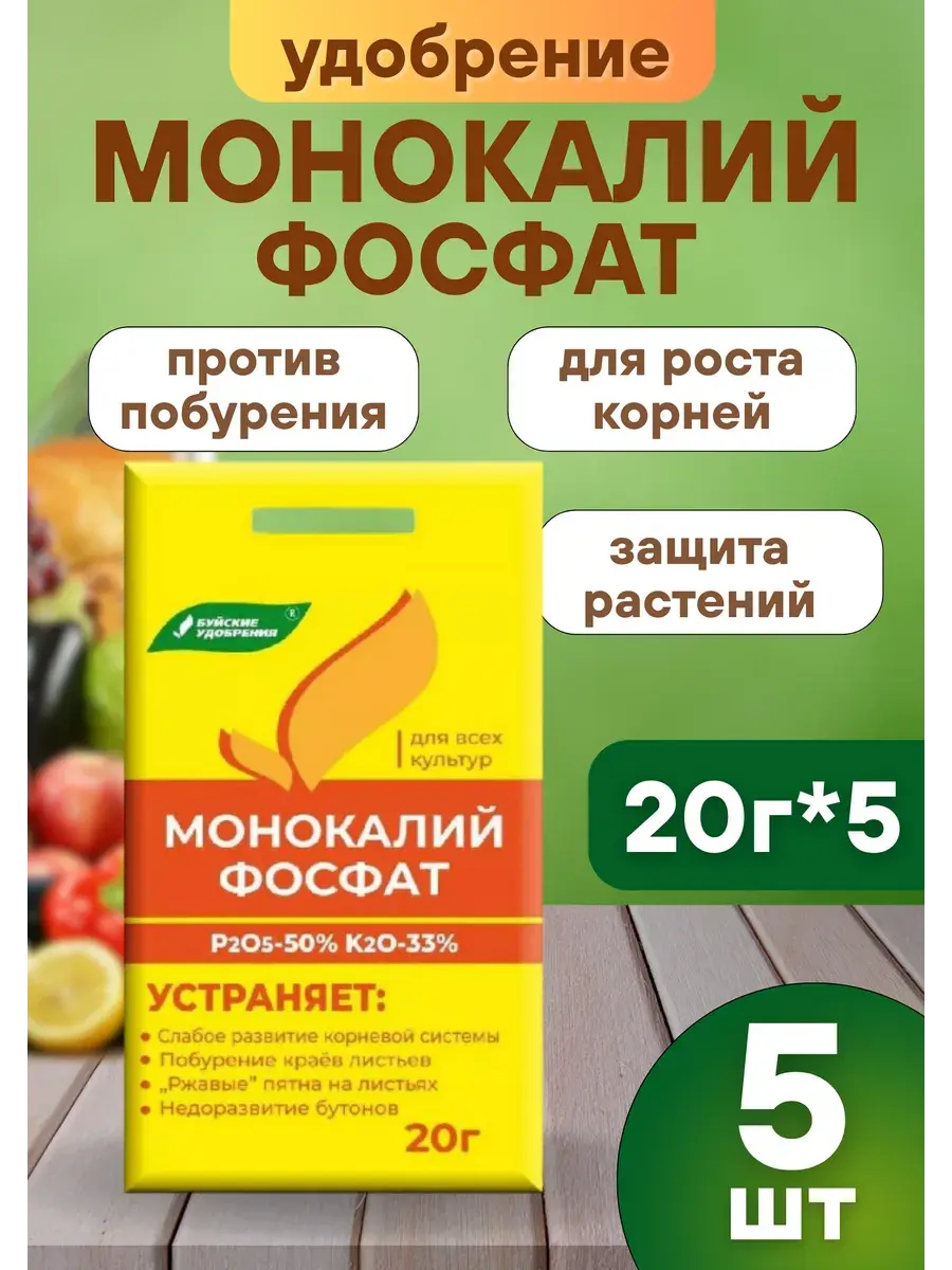 Водорастворимое удобрение монокалий фосфат для любых культур 20г применяется широко для корневых и внекорневых подкормок в закрытом и открытом грунте.