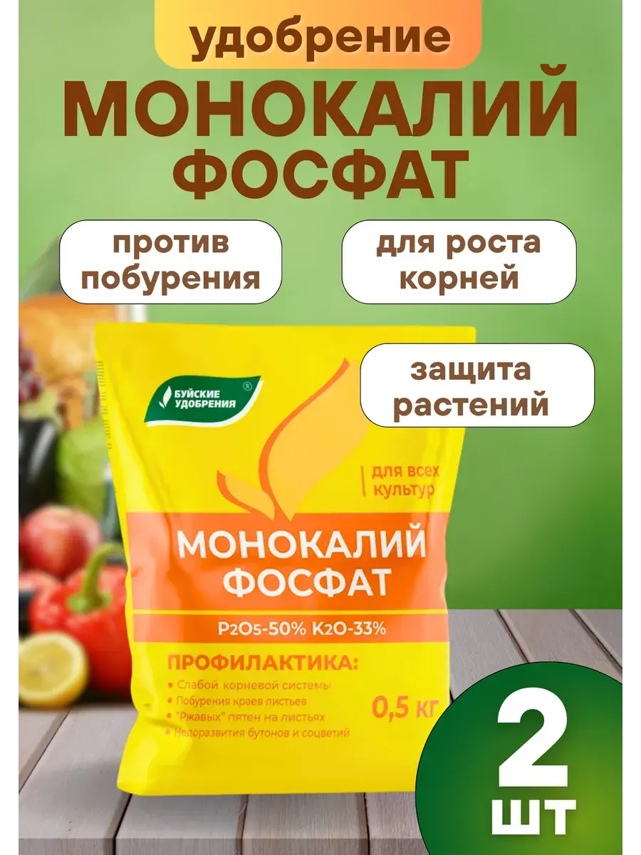 Универсальное средство для подкормки различных культур вашего сада или огорода. Монокалий фосфат - идеальное комплексное удобрение, которое обеспечит растения необходимыми питательными веществами: калий и фосфор для активного роста и развития рассады и взрослых растений.