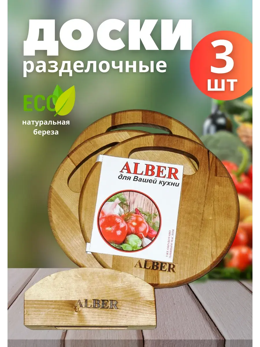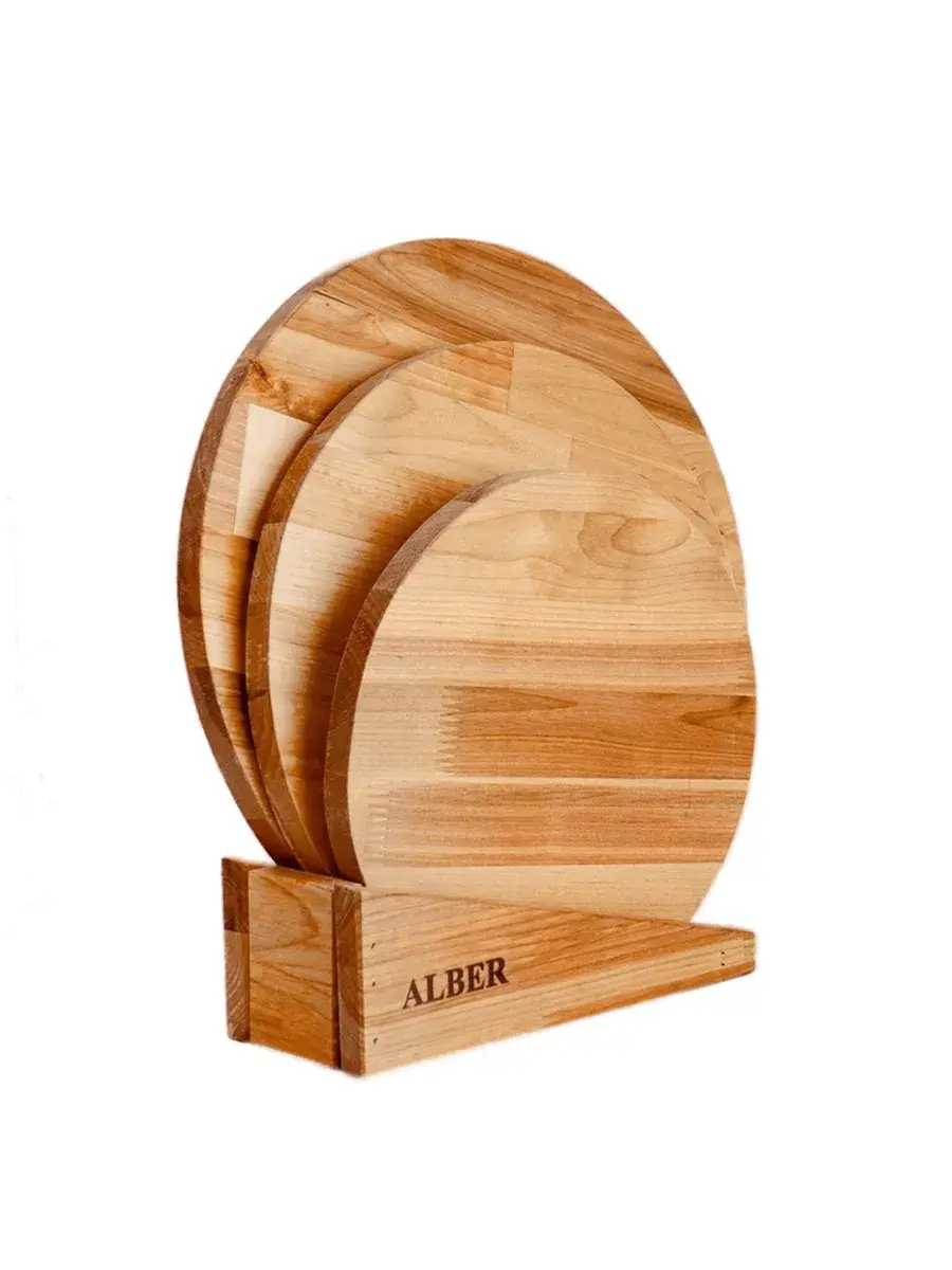 Набор досок разделочных 3 шт береза КРУГЛЫЕ в кассете d-350*18 мм, d-300*18 мм, d-250*18 мм. на подставке идеально впишутся в любой интерьер и добавят уют. Набор отлично подойдёт в качестве памятного подарка. В каждом доме должен быть комплект разделочных досок из дерева, предназначенных для нарезки сыра, рыбы, хлеба, фруктов. Наши доски станут не только надежным помощником в нарезке, но и послужат предметом красивой сервировки и подачи блюд. Можно использовать как сервировочные доски из дерева. Можно использовать как подставку для пиццы. В отличие от пластиковых стеклянных и каменных аналогов, наша кухонная утварь / сервировочная посуда, экономит место, не впитывает запахи и масла, комфортна в использовании. Набор впишется в интерьер любой кухни, сочетается с любой посудой. Подарок маме; бабушке; подруге; другу; посуда в подарок. Каждая доска отличается оригинальной текстурой дерева, прочна и долговечна. Придаст вашему дому уют и приятную атмосферу. Будет прекрасным подарком для вас и ваших близких.