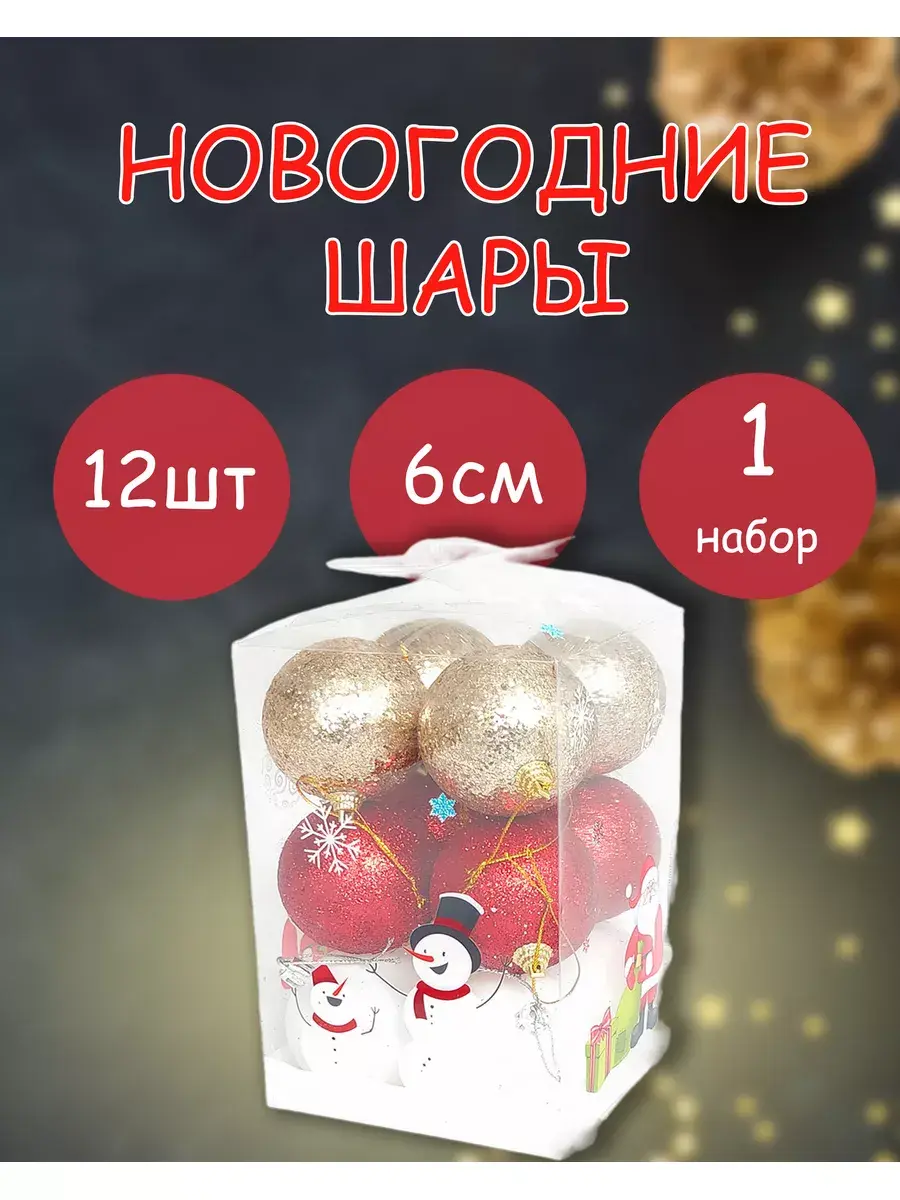 Новый год- любимый праздник большинства взрослых и детей, ведь в новогоднюю ночь случаются самые настоящие чудеса! Елку принято украшать новогодними елочными игрушками. Главными новогодними украшениями на елку становятся шарики. Новогодняя Елочная игрушка, в виде новогоднего шара отлично подойдет как украшение на елку, также можно повесить на стену, или применять их как уличные новогодние украшения. Набор елочных шаров - это прекрасный выбор для украшения елки во время праздника. Шары выполнены из высококачественного материала, который обеспечивает долговечность и надежность использования.Каждый шар имеет яркий и красивый дизайн, который добавляет праздничного настроения в любой дом. Шары имеют удобную петельку для подвешивания, что делает их легкими в использовании и позволяет легко закрепить их на ветвях елки. Они также легко чистятся и могут использоваться многократно в течение многих лет.Набор елочных новогодних шаров - это отличный выбор для тех, кто ищет качественные и красивые украшения для своей елки. Он добавит праздничного настроения и создаст уютную атмосферу в любом доме во время праздника.