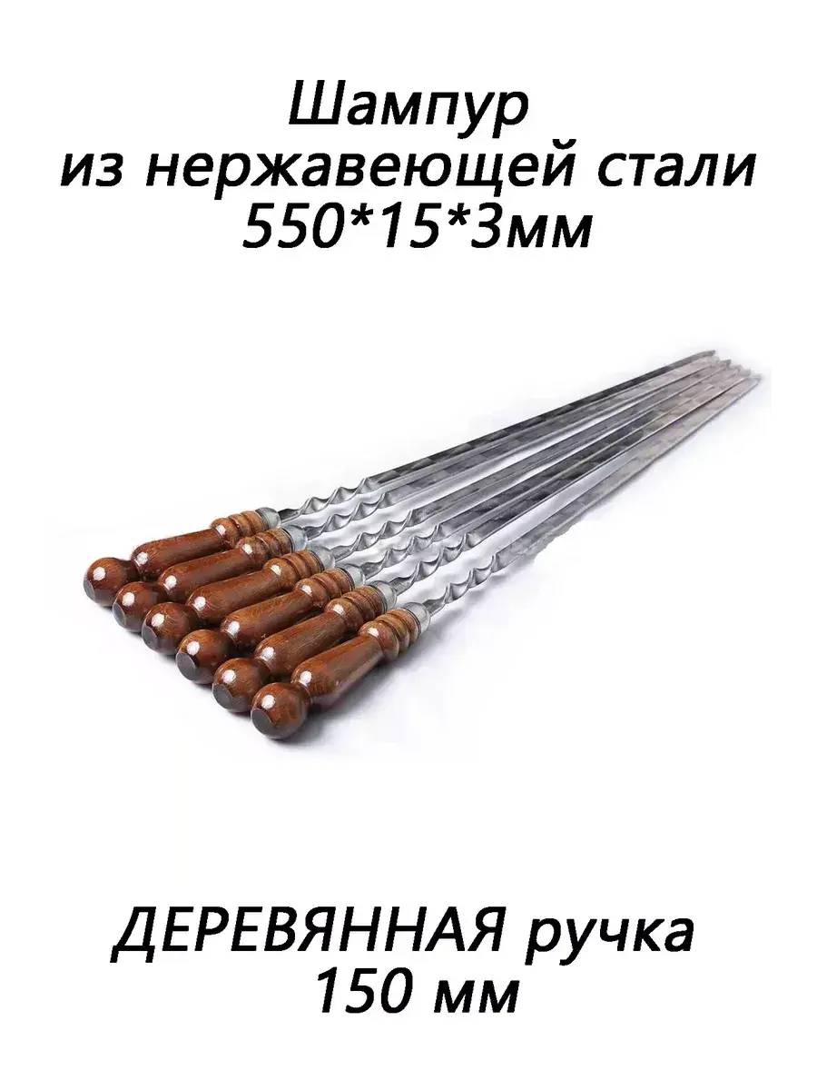 Набор из 6 Шампуров из нержавеющей стали 550*15*3 мм, с деревянной ручкой 150мм выполнены из качественных и прочных материалов. Шампура с деревянной ручкой подходят для мангала, гриля, тандыра, а также для любителей отдыха на природе. Набор для пикника сделает ваш отдых незабываемым и вкусным. Шампура уже заточены. Шампура из нержавеющей стали справятся со всеми видами мяса и овощами. Шампура для люля кебаб, для вкусного и сочного шашлыка порадуют гурманов.