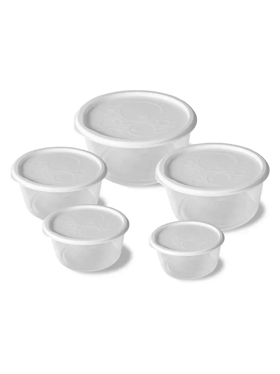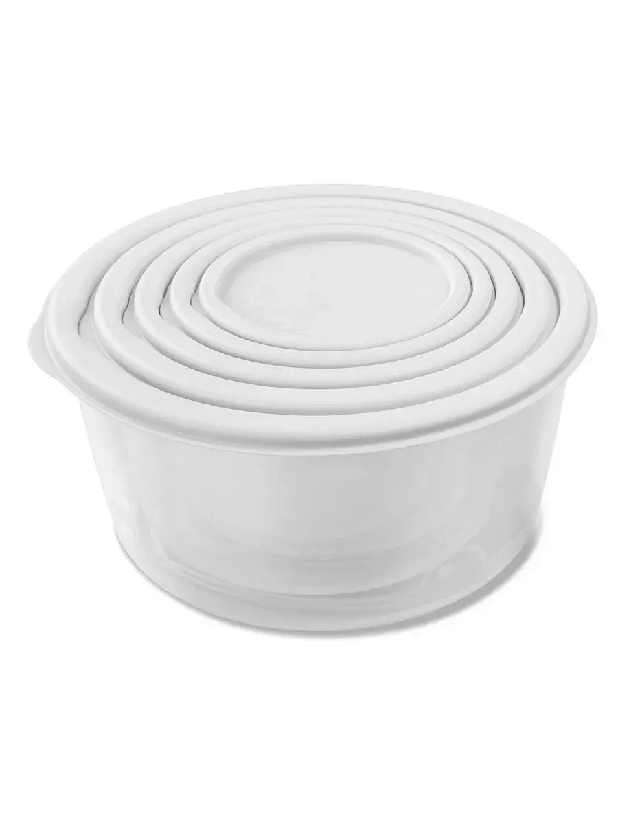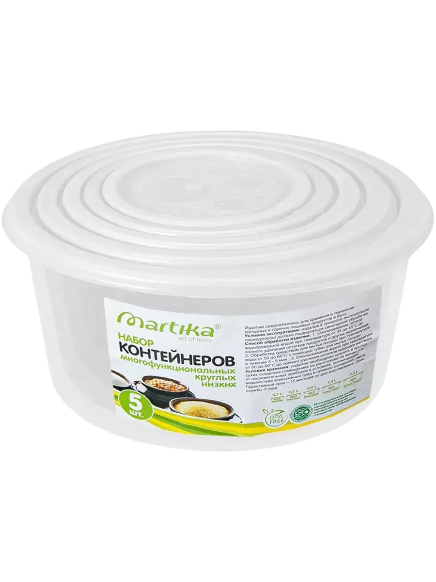 Набор контейнеров пищевых пластиковых круглых низких входят 5 штук.
