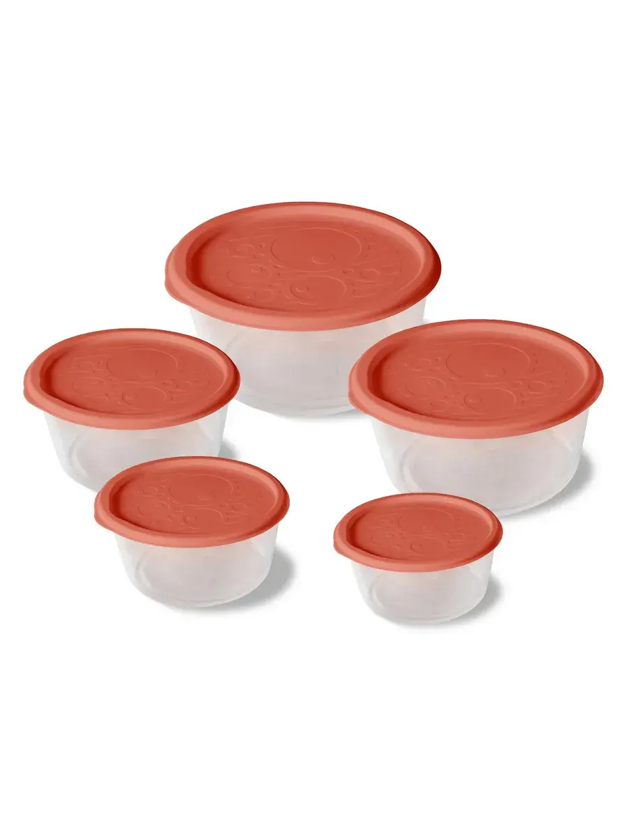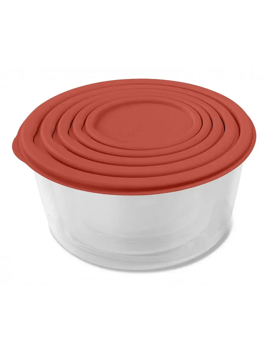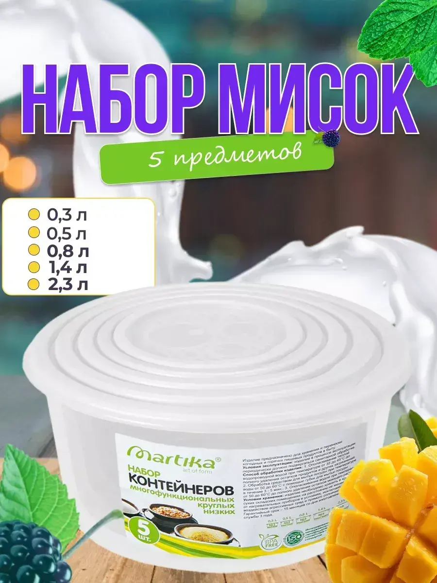 Набор контейнеров пищевых пластиковых круглых низких входят 5 штук.