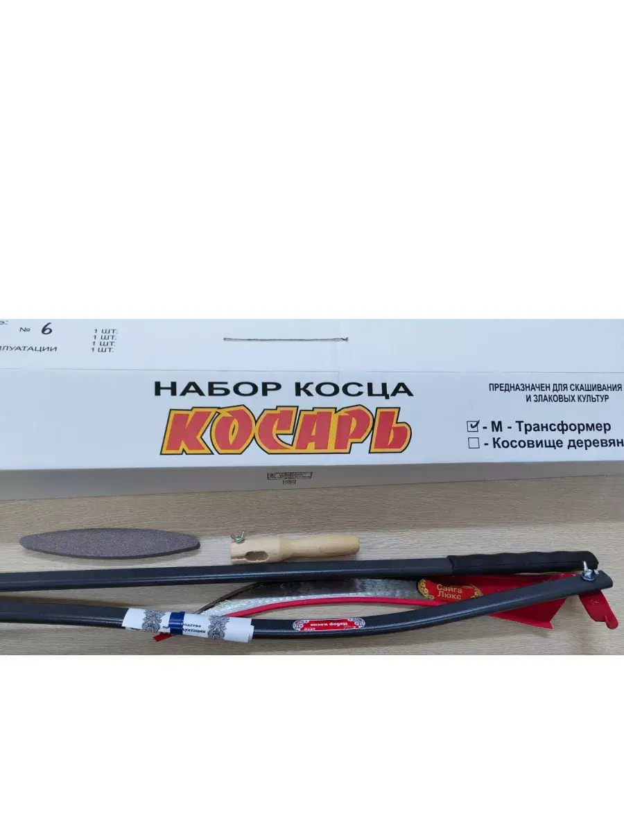 Набор косца "ТРАНСФОРМЕР" включает косу Сайга Люкс с лезвием длиной 600 мм и складное косовище. Используется для покоса травы на ровных участках большой площади. Косовище длиной 170 см позволяет косить с прямой спиной и долго не уставать. Для придания лезвию остроты рекомендуется отбить и наточить.
