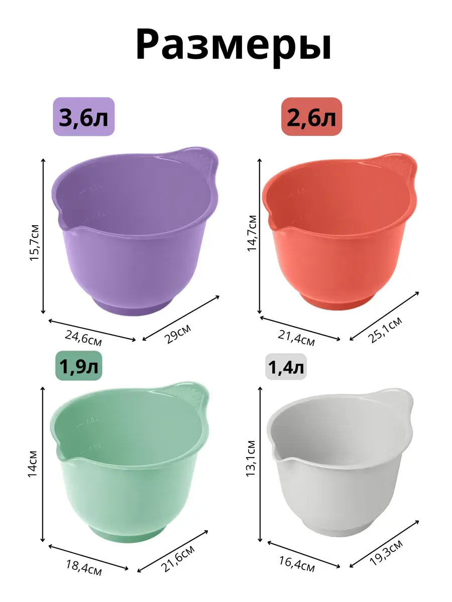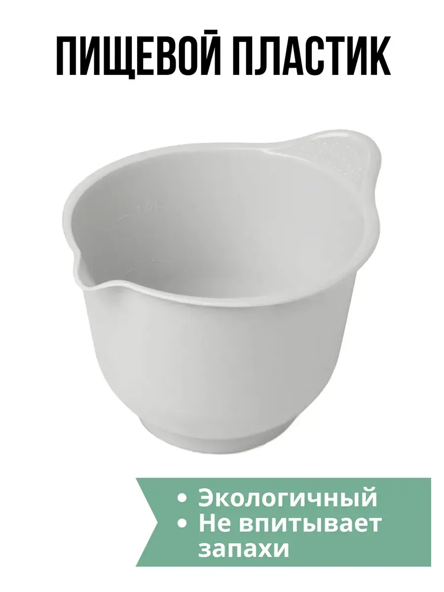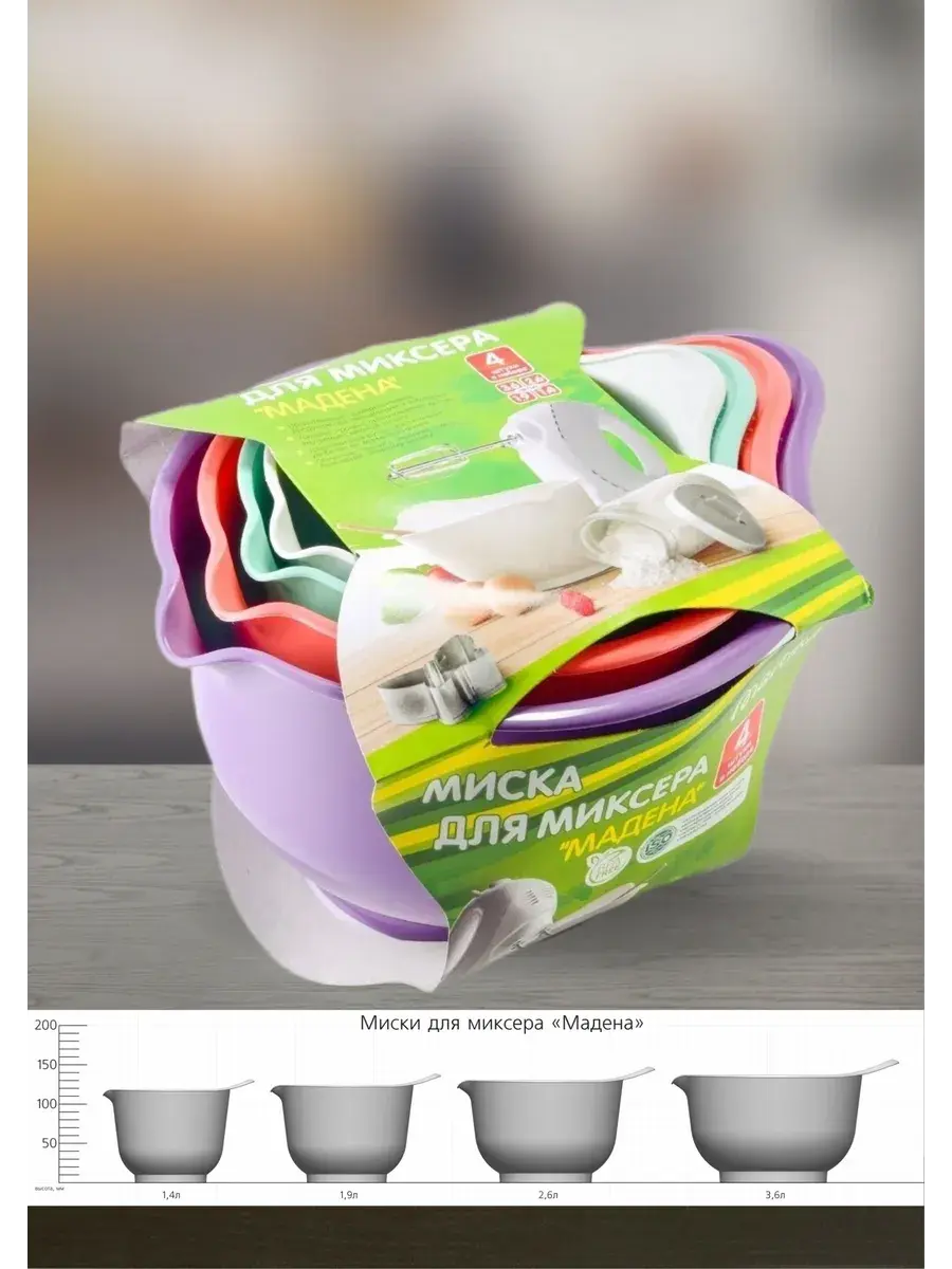 Набор чаш "Мадена" станет незаменимым помощником не только профессиональному кондитеру, а также обычной хозяйке при приготовлении любимых домашних блюд или выпечки дома. Настоящим кулинарным энтузиастам и просто тем, кто любит проводить время за плитой обязательно пригодится данная посуда - это не просто миски для миксера, а полезный инвентарь на кухне. Пластиковые чашки обладают прочной и устойчивой конструкцией, что делает их идеальными контейнерами для смешивания и взбивания различных ингредиентов. Благодаря разным объемам емкостей, вы сможете готовить как маленькие порции - одному, так и всей семье. Используйте кружки для погружного блендера не только в кулинарии, а на пикнике или в поездке на дачу. Удобные ручки позволят вам без труда переносить их из места в место, а глубокие формы с носиком обеспечат надежное хранение и защиту жидкостей от брызг и разливов, при переливе из одной посудки в другую. Эти кухонные принадлежности просты в уходе, и их легко мыть и вручную или в посудомоечной машине при низких температурах. Мерные шкалы помогут в точном измерении продуктов при замесе теста, сотворении кондитерского крема. Домохозяйки наверняка придумают универсальное применение этим пластмассовым изделиям, и смогут применить их, как салатники под овощи и фрукты.