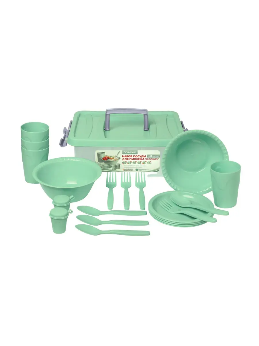 Набор аксессуаров для пикника является неотъемлемой частью отдыха на природе, будь то за городом, на даче или во время походов и кемпинга. Посуда для пикника, изготовлена из прочного пластика, идеально подходит для мужчин и женщин, которые хотят насладиться отдыхом на свежем воздухе. В комплект входит 21 предмет, достаточных для комфортного пикника вчетвером. Вся посуда изготовлена из качественного и прочного пластика, обеспечивая долговечность. Благодаря компактному контейнеру с удобной ручкой, набор легко переносить и хранить дома или в машине во время поездок. В состав набора входят следующие предметы: Стаканы для холодных напитков (4 шт.) - легкие и удобные стаканы идеально подходят для освежающих напитков на природе. Они прекрасно сочетаются с атмосферой пикника и обеспечивают комфортное питье. Тарелки для вторых блюд и закусок (4 шт.) - эти удобные и прочные тарелки являются неотъемлемой частью приготовления и сервировки пищи на пикнике. Они позволяют насладиться вкусными блюдами на свежем воздухе, не отказывая себе в комфорте. Вилки (4 шт.) и ложки (4 шт.) - комплект столовых приборов из пластика обеспечивает удобство при еде на природе. Легкие и прочные, они помогут насладиться вкусом блюд, не отвлекаясь на поиск подходящих приборов. Миски (салатницы) (2 шт.) - эти емкости из пластика идеально подходят для приготовления и подачи салатов и других блюд. Легкие и удобные в использовании, они добавят удовольствия в приготовлении и сервировке пищи на пикнике. Емкости для специй (2 шт.) - эти компактные емкости позволяют удобно хранить специи и приправы во время пикника. Они предотвращают рассыпание и позволяют добавить нужный вкус вашим блюдам. Этот набор аксессуаров для пикника на 4 персоны станет отличным подарком для любителей активного отдыха на природе.