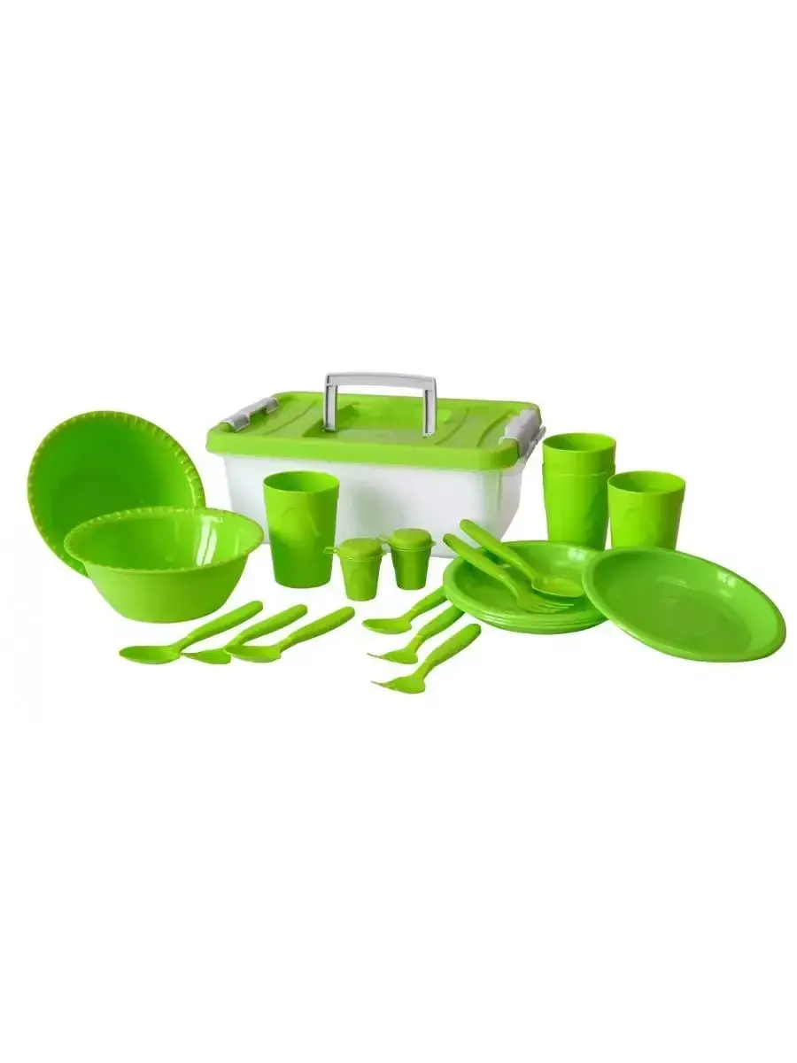 Набор аксессуаров для пикника является неотъемлемой частью отдыха на природе, будь то за городом, на даче или во время походов и кемпинга. Посуда для пикника, изготовлена из прочного пластика, идеально подходит для мужчин и женщин, которые хотят насладиться отдыхом на свежем воздухе. В комплект входит 21 предмет, достаточных для комфортного пикника вчетвером. Вся посуда изготовлена из качественного и прочного пластика, обеспечивая долговечность. Благодаря компактному контейнеру с удобной ручкой, набор легко переносить и хранить дома или в машине во время поездок. В состав набора входят следующие предметы: Стаканы для холодных напитков (4 шт.) - легкие и удобные стаканы идеально подходят для освежающих напитков на природе. Они прекрасно сочетаются с атмосферой пикника и обеспечивают комфортное питье. Тарелки для вторых блюд и закусок (4 шт.) - эти удобные и прочные тарелки являются неотъемлемой частью приготовления и сервировки пищи на пикнике. Они позволяют насладиться вкусными блюдами на свежем воздухе, не отказывая себе в комфорте. Вилки (4 шт.) и ложки (4 шт.) - комплект столовых приборов из пластика обеспечивает удобство при еде на природе. Легкие и прочные, они помогут насладиться вкусом блюд, не отвлекаясь на поиск подходящих приборов. Миски (салатницы) (2 шт.) - эти емкости из пластика идеально подходят для приготовления и подачи салатов и других блюд. Легкие и удобные в использовании, они добавят удовольствия в приготовлении и сервировке пищи на пикнике. Емкости для специй (2 шт.) - эти компактные емкости позволяют удобно хранить специи и приправы во время пикника. Они предотвращают рассыпание и позволяют добавить нужный вкус вашим блюдам. Этот набор аксессуаров для пикника на 4 персоны станет отличным подарком для любителей активного отдыха на природе. Он обеспечит комфорт и практичность во время путешествий, поездок на дачу, кемпинга и шашлыков. Берегите природу и наслаждайтесь отдыхом с этим практичным и стильным набором для пикника!