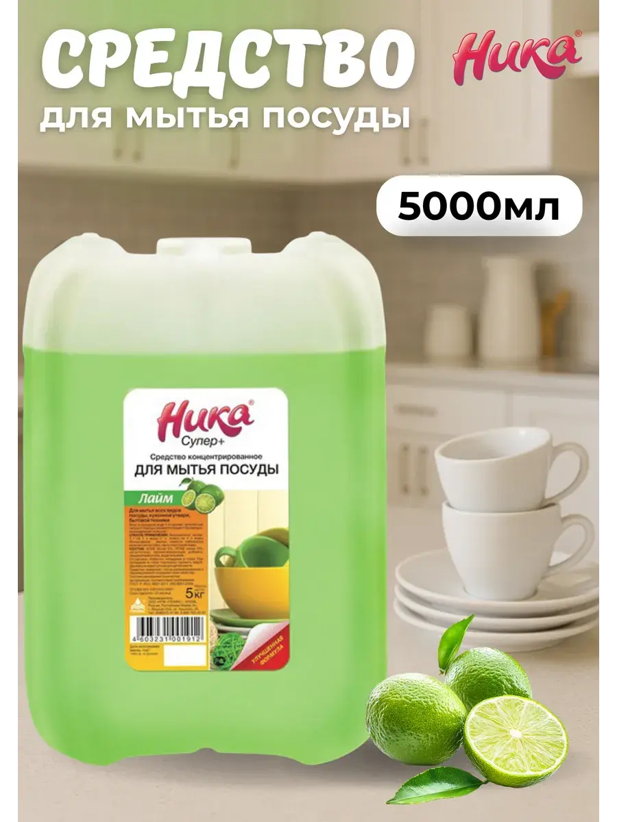 Профессиональное средство для мытья посуды Ника-Супер Плюс. Моющее средство для посуды подходит для использования с водой любой температуры и жёсткости. Назначение средства для мытья посуды 5 л: Экономичный вариант для мытья посуды, предметов домашнего обихода, кухонной утвари и бытовой техники. Преимущества моющее средство для посуды 5 л: Удаляет загрязнения любого характера, быстрое отмачивание застарелых загрязнений, образует густую стойкую пену. Жидкость для мытья посуды благодаря обезжиривающим свойствам средство легко расщепляет жир даже в холодной воде. Ника средство устраняет неприятные запахи. Средство для мытья посуды полностью смывается водой. Безвредно, не раздражает кожу рук. Не содержит хлор. Гель для мытья посуды обладает легким ароматом лайма. Средство для мытья посуды 5 литров замерзает, после размораживания и перемешивания сохраняет свои свойства. Способ применения: Экономичное мытье: 1 г на 1 л воды. Нанести средство на губку. Мыть под струей воды.