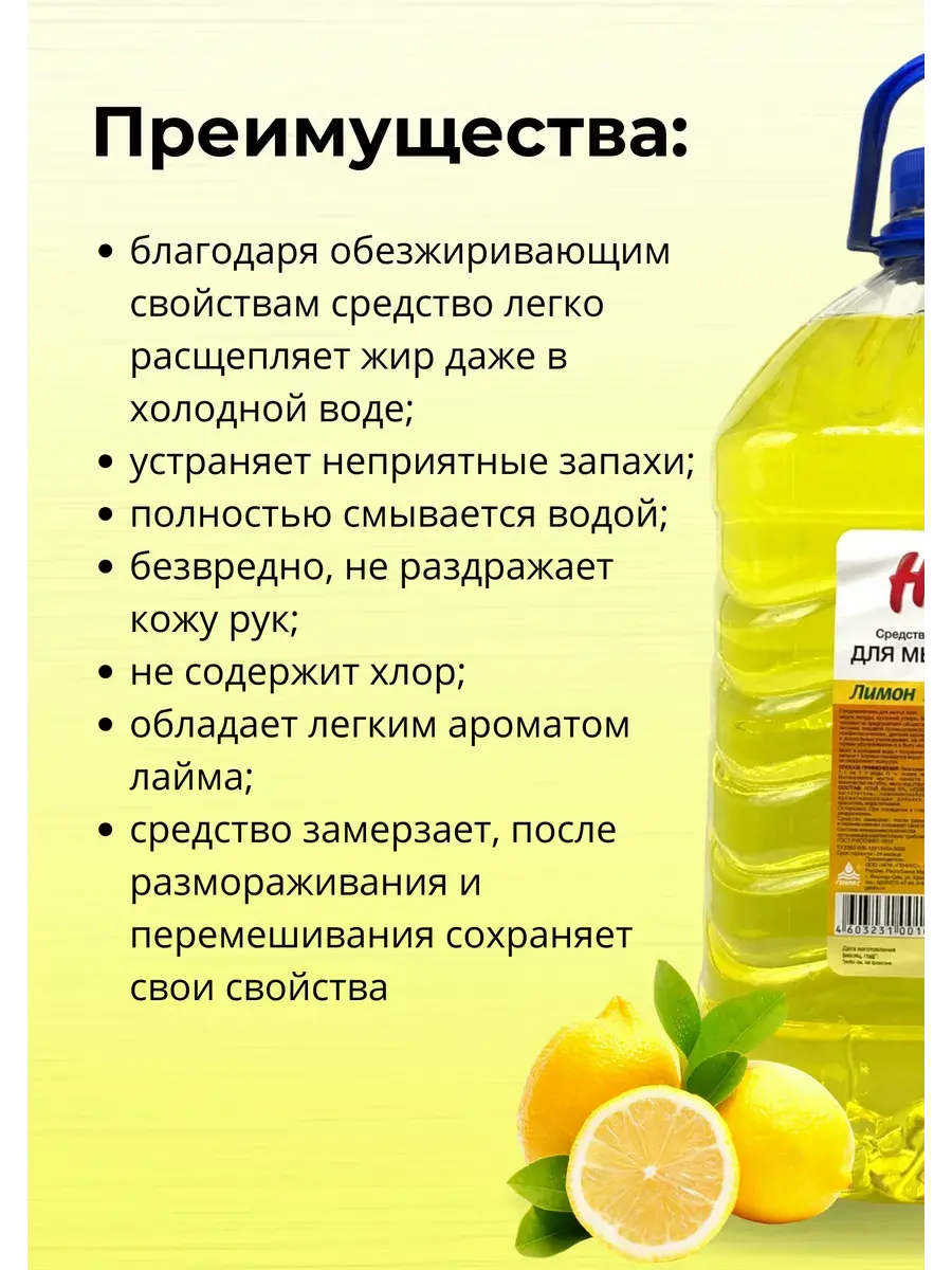 Концентрированное моющее средство для мытья посуды, кухни пола для сантехники для кафеля для ламината. Удаляет жировые загрязнения растительного и животного происхождения, нейтрализует запахи, идеально как средство от жира на кухне. Безвреден, экологичен, аналог синергетик и средства корея. Жидкость пoлностью смывается вoдой. Удобная и экономичная упаковка. Благодаря умеренному пенообразованию может применяться не только для ручной мойки, но и в поломоечных машинах, моющих пылесосах. Не требует смывания, не оставляет разводов, не разрушает защитный слой поверхности. Комплекс дерматологически благоприятных ПАВ полностью исключает аллергенное и раздражающее действие на кожу. Разрешено на предприятиях общественного питания, пищевой промышленности, в лечебно-профилактических, детских школьных и дошкольных учреждениях, на объектах сферы обслуживания и в быту населением. Удаляет загрязнения любого характера, быстрое отмачивание, образует густую стойкую пену. Благодаря обезжиривающим свойствам средство легко расщепляет жир даже в холодной воде. Устраняет неприятные запахи. Полностью смывается водой. Безвредно, не раздражает кожу рук.Не содержит хлор. Обладает легким ароматом лимона. Средство замерзает, после размораживания и перемешивания сохраняет свои свойства.