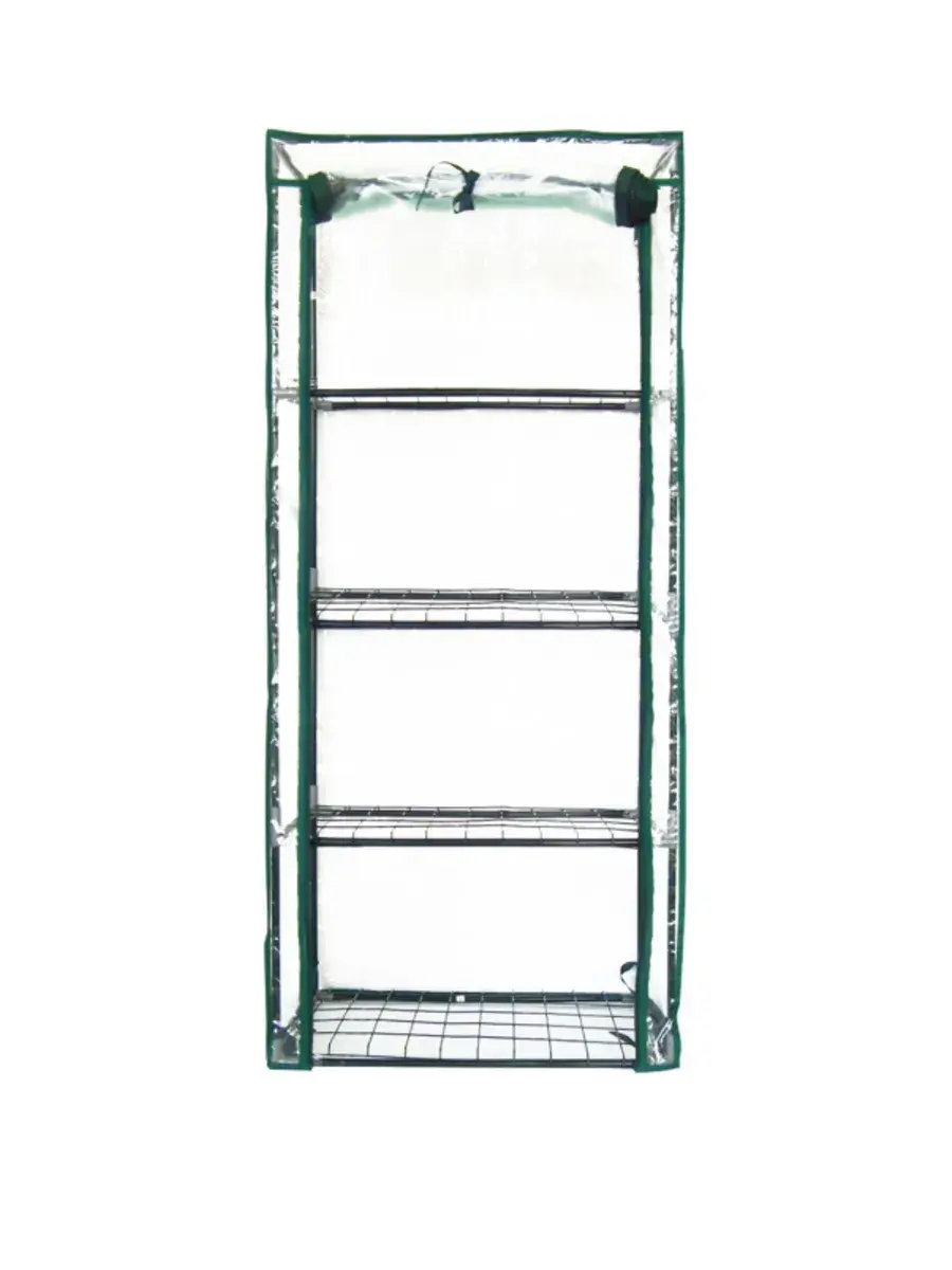 Парник для рассады (растений) на подоконник 4 полки, 460*240*1050 мм, ЗЕЛЕНЫЙ металлический каркас+ПВХ пленка мкр.