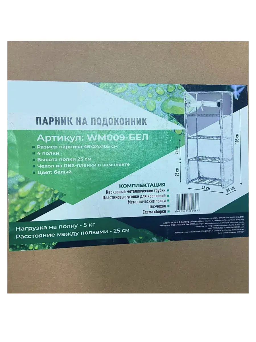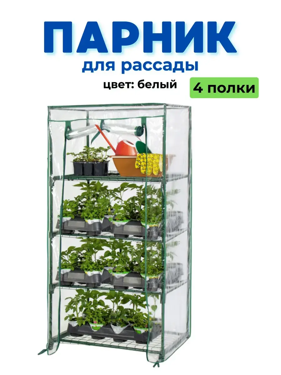 Парник для рассады (растений) на подоконник 4 полки, 460*240*1050 мм, ЗЕЛЕНЫЙ металлический каркас+ПВХ пленка мкр