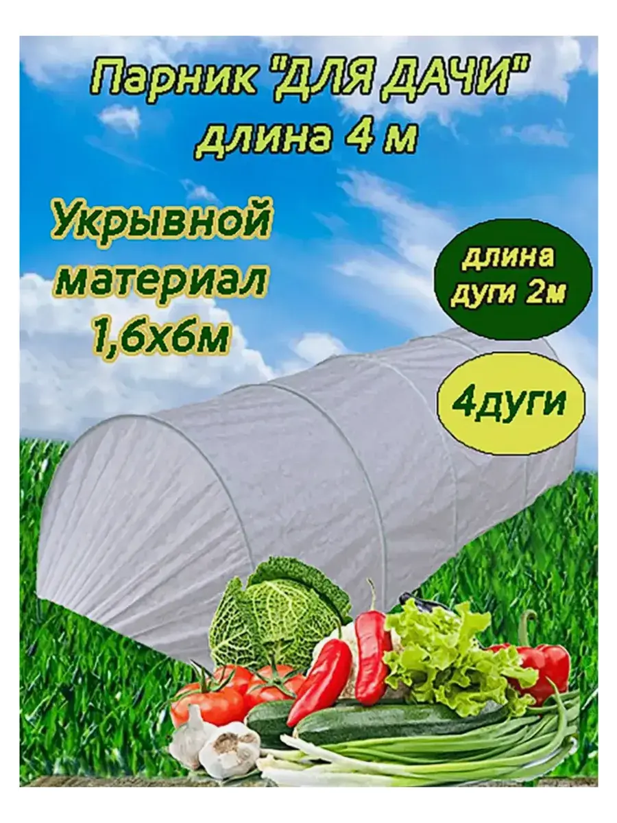 Парник садовый №40 длина 4 м (комплект: ПВХ дуги 2м - 4шт, укрывной материал ширина 1,6м, длина 6м)