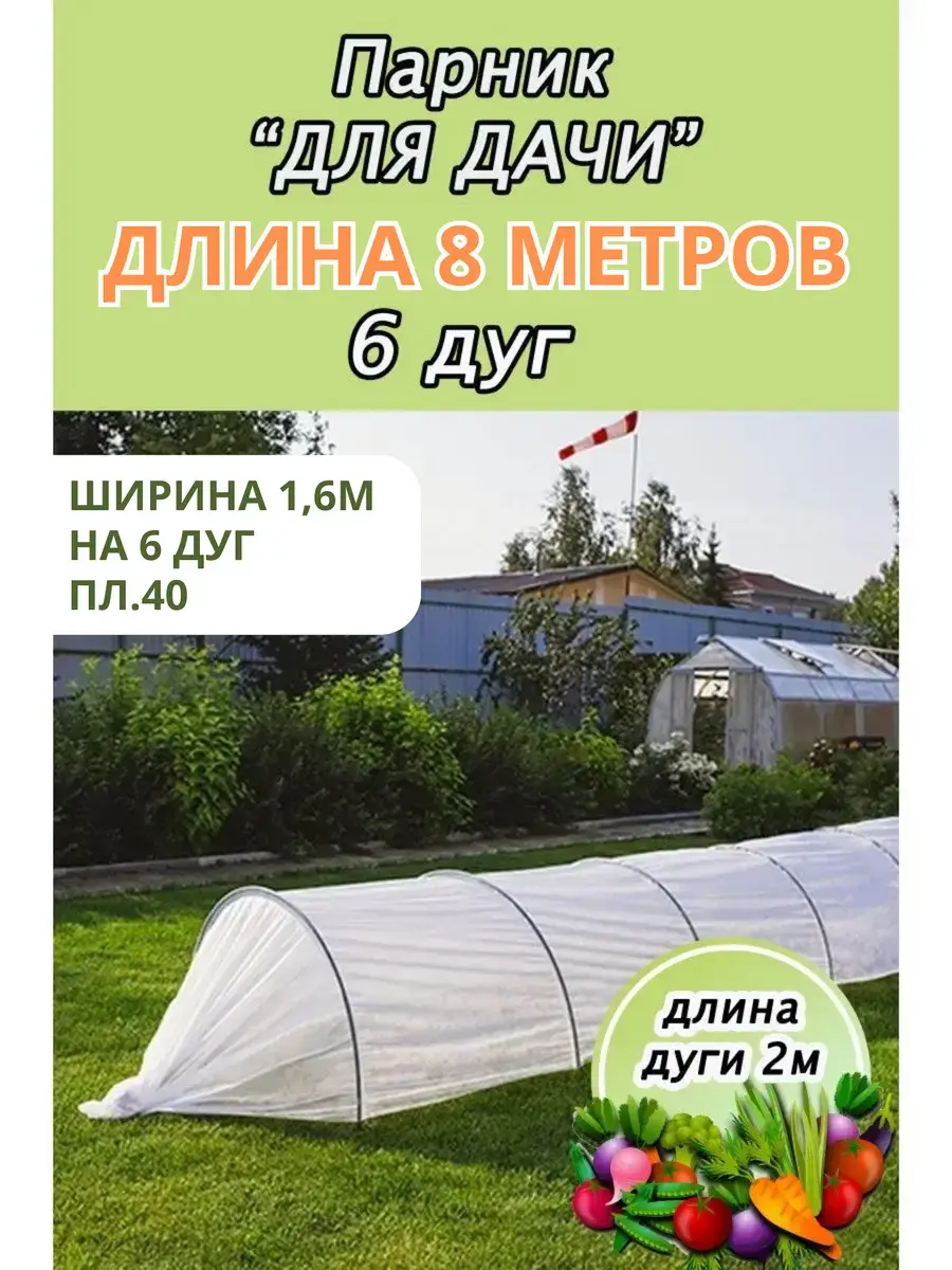 Парник садовый №40 длина 6 м (комплект: ПВХ дуги 2м - 6шт, укрывной материал №40, ширина 1,6м, длина 8м)