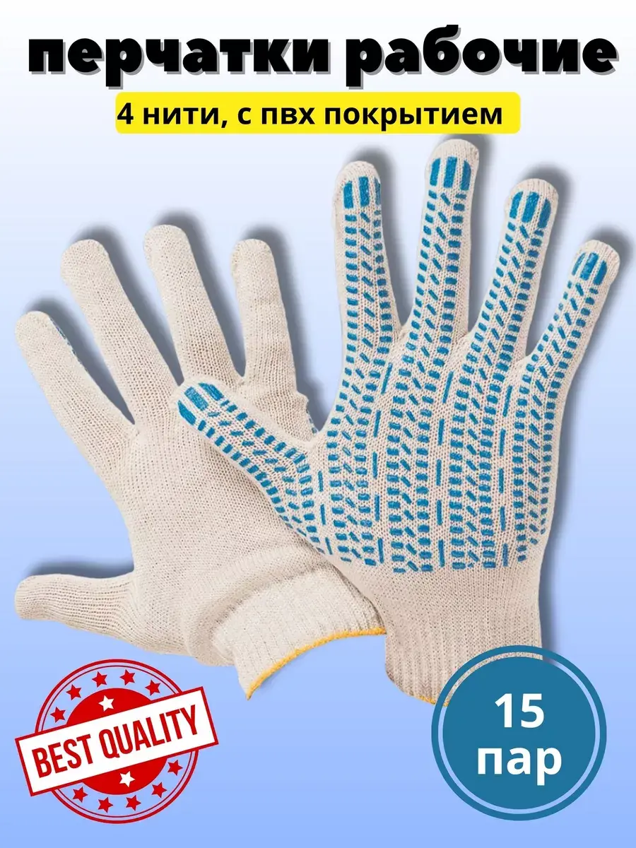 Перчатки 4-х НИТКА ТОЧКА (с ПВХ, 10 класс, электронный оверлок, манжет) "Эконом". Отлично подойдут для защиты рук от механических повреждений. Работы в саду, при строительстве и прочих бытовых работах. Предназначение и преимущества трикотажных перчаток с ПВХ покрытием Точка. Материал, из которого изготовлены данные изделия, очень мягкий, тонкий и приятный на ощупь. Руки в этих перчатках чувствуют себя очень комфортно. Одну пару можно легко поместить в карман одежды. Специальное ПВХ-покрытие позволяет рукам не скользить, когда требуется приложение большого физического усилия. тонкие и дышащие, обеспечивают надежный хват. Хорошо тянутся и держат форму. Материал полностью дышащий, не вызывает аллергических pеакций. Также подойдут для выхода на улицу во время пандемии. В отличие от медицинских перчаток, руки не потеют, что является на наш взгляд огромным плюсом. Эти перчатки находят широкое применение в сферах, включая строительство, ремонтные работы, хозяйственные задачи, погрузочно-разгрузочные операции, сельское хозяйство, автомастерские, садоводство и многие другие. Синие уплотнения из ПВХ, выполненные в форме мелких точек, обеспечивают оптимальную вентиляцию, позволяя рукам оставаться сухими и предотвращая появление пота и пересыхания. Это обеспечивает надежный захват предметов в руках. Материал хозяйственных перчаток не вызывает аллергических реакций, что делает их идеальным выбором для людей с чувствительной кожей. Простая хлопковая ткань позволяет легко стирать перчатки вручную или в стиральной машине. Перчатки рабочие обладают высокой практичностью и состоят из нескольких видов материалов, которые обеспечивают эффективную защиту от грязи, царапин и мозолей. Они находят широкое применение как в промышленности, включая химическую, металлургическую, пищевую, текстильную и фармацевтическую отрасли, так и в повседневных делах, связанных с строительством, реставрацией и земледелием.