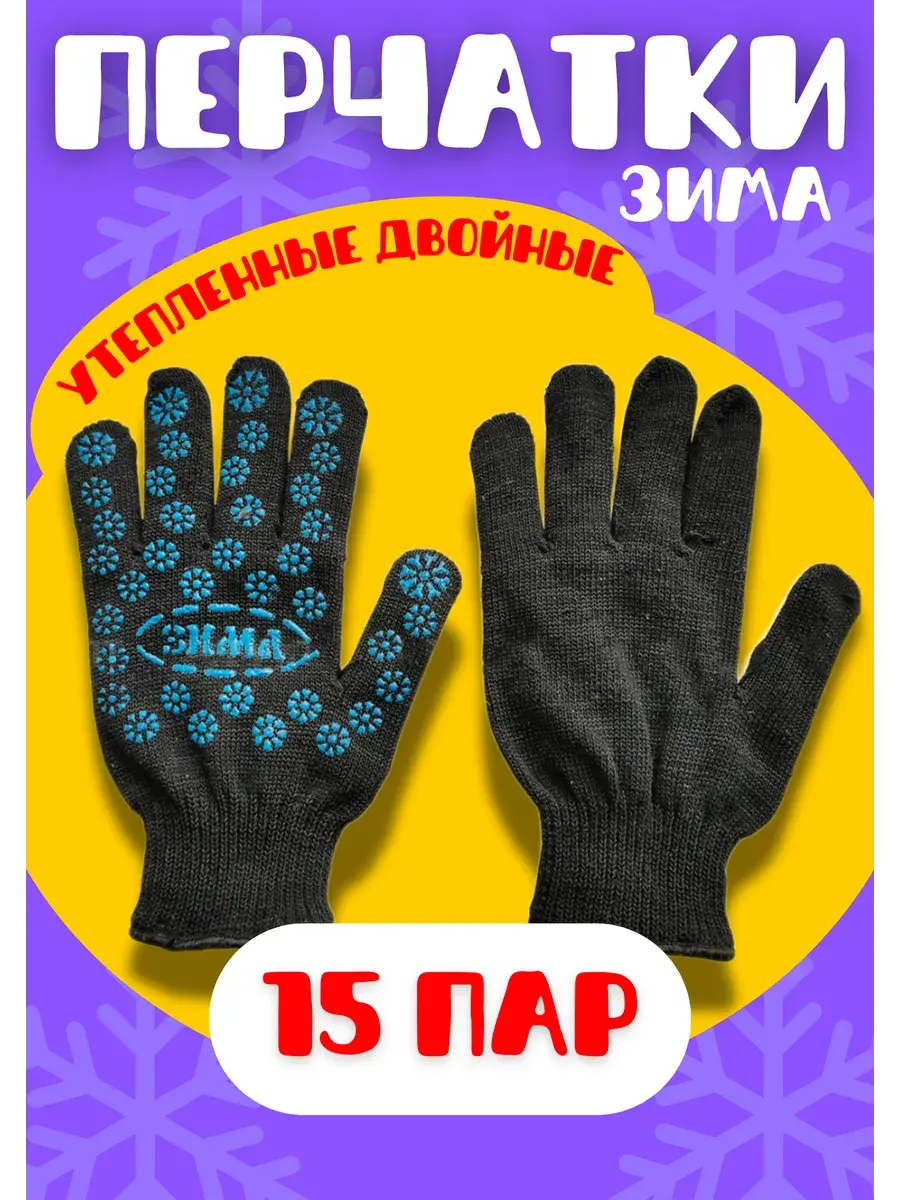 Перчатки ЗИМА утепленные - двойные ЭКОН с ПВХ черные (5-и нит., 7 класс, синий овер.). Зимние утепленные перчатки изготовлены из качественных материалов, обеспечивающих комфорт и защиту рук от холода и влаги. Перчатки имеют двойную утепленную подкладку, что делает их идеальным выбором для работы в условиях низких температур. Внешний слой выполнен из плотной ткани с ПВХ покрытием, которая обеспечивает прочность и долговечность перчаток. Перчатки доступны в сером цвете с синим оверлоком и имеют пять нитей и 7 класс вязки. Они идеально подходят для использования в строительстве, промышленности, сельском хозяйстве и других отраслях, где требуется защита рук в холодное время года.
