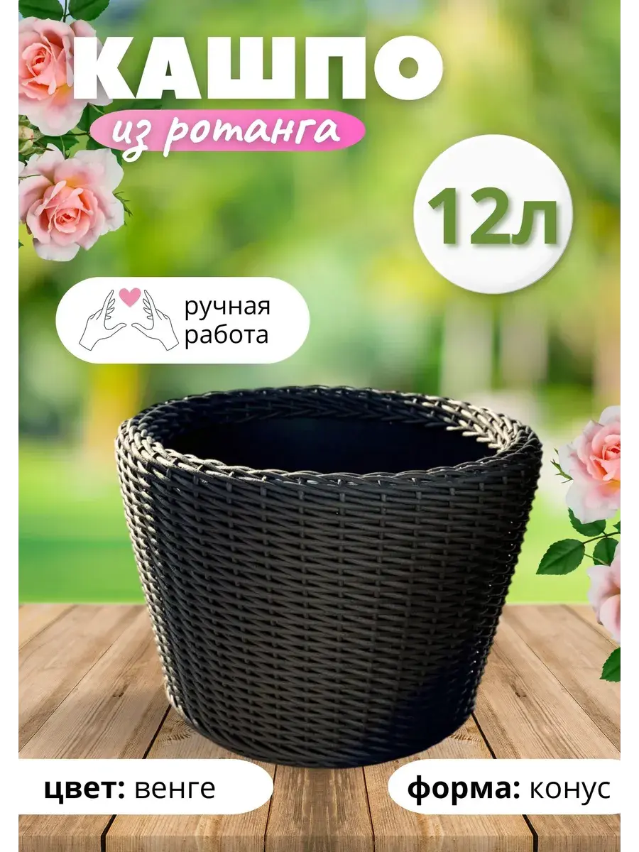 Плетёное кашпо из ротанга станет стильным и практичным украшением для вашего интерьера или сада. Его форма и вместительный объем идеально подходят для выращивания различных растений, от пышных цветов до компактных кустарников. Кашпо выполнено из прочного материала, который устойчив к воздействию влаги и солнечных лучей. Его натуральный цвет гармонично впишется в любой дизайн, создавая уютную и теплую атмосферу. Ручная работа - идеально подойдет для подарка.