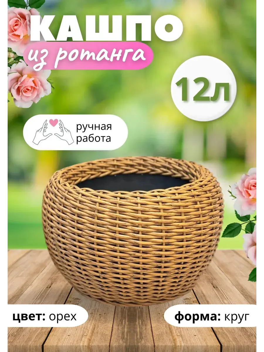 Плетёное кашпо из ротанга станет стильным и практичным украшением для вашего интерьера или сада. Его форма и вместительный объем идеально подходят для выращивания различных растений, от пышных цветов до компактных кустарников. Кашпо выполнено из прочного материала, который устойчив к воздействию влаги и солнечных лучей. Его натуральный цвет гармонично впишется в любой дизайн, создавая уютную и теплую атмосферу. Ручная работа - идеально подойдет для подарка.
