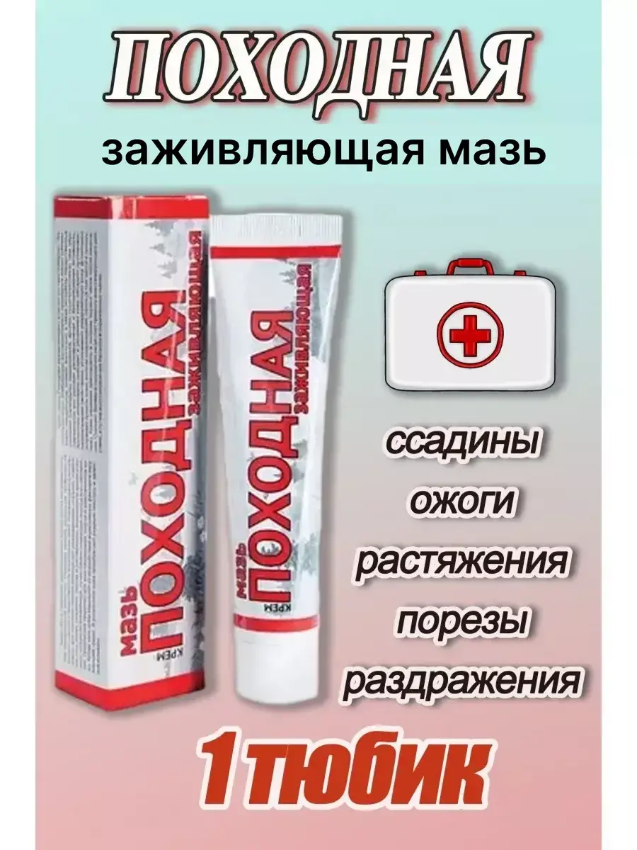 Походная мазь 50гр от ожогов, ранозаживляющая, от ссадин, порезов, растяжений, с пантенолом. Мазь Походная заживляющая используется как универсальное заживляющее средство, компоненты которого ускоряют процессы заживления и существенно сокращают период восстановления, а также восстанавливают тонус и эластичности кожи. Используется для оказания первой помощи при раздражениях, порезах, поверхностных ранах, ссадинах, ожогах и растяжениях. Кроме того, крем защищает от воздействия агрессивных факторов окружающей среды. В результате использования кожа приобретает гладкую текстуру и здоровый румянец. Состав: природные высокоактивные эфирные масла (облепиховое, миндальное, соевое, масло ши), экстракты лекарственных растений (календулы, подорожника, арники, тысячелистника), а также витамин Е (восстанавливает кожный покров), Аллантоин (интенсивно смягчает и увлажняет кожу, обладает противовоспалительными свойствами, успокаивает раздраженную кожу), Д-пантенол (устраняет сухость кожи, мелкие повреждения, ожоги,в том числе и солнечные).