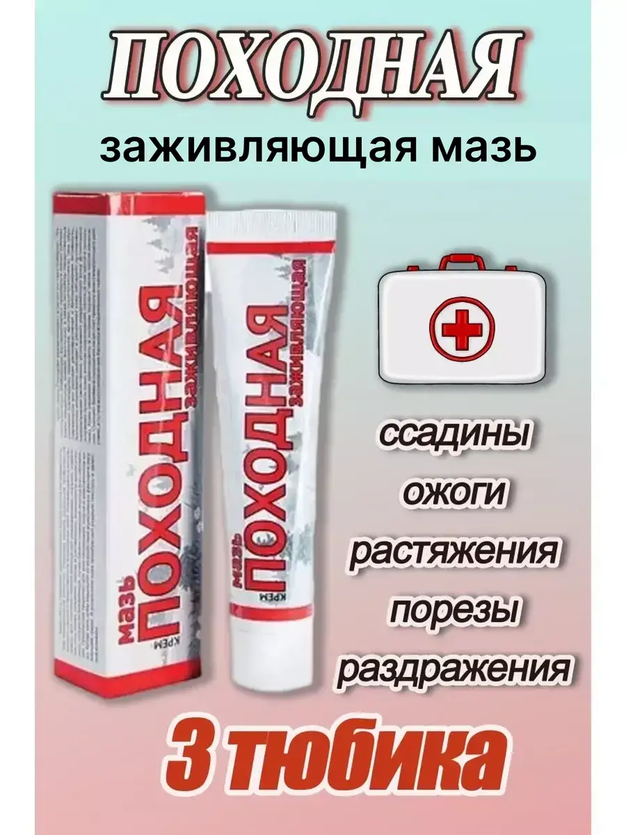 Походная мазь 50гр от ожогов, ранозаживляющая, от ссадин, порезов, растяжений, с пантенолом. Мазь Походная заживляющая используется как универсальное заживляющее средство, компоненты которого ускоряют процессы заживления и существенно сокращают период восстановления, а также восстанавливают тонус и эластичности кожи. Используется для оказания первой помощи при раздражениях, порезах, поверхностных ранах, ссадинах, ожогах и растяжениях. Кроме того, крем защищает от воздействия агрессивных факторов окружающей среды. В результате использования кожа приобретает гладкую текстуру и здоровый румянец. Состав: природные высокоактивные эфирные масла (облепиховое, миндальное, соевое, масло ши), экстракты лекарственных растений (календулы, подорожника, арники, тысячелистника), а также витамин Е (восстанавливает кожный покров), Аллантоин (интенсивно смягчает и увлажняет кожу, обладает противовоспалительными свойствами, успокаивает раздраженную кожу), Д-пантенол (устраняет сухость кожи, мелкие повреждения, ожоги,в том числе и солнечные).
