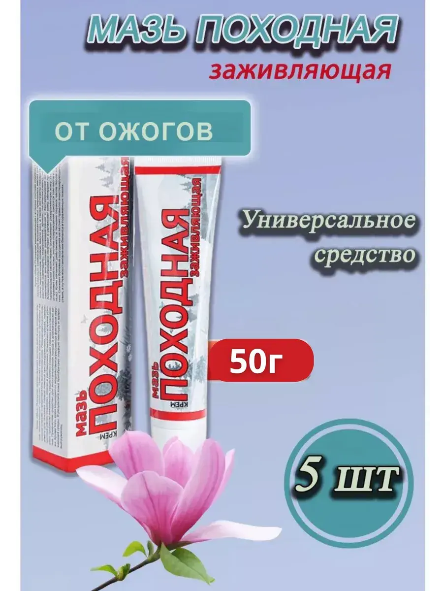 Походная мазь 50гр от ожогов, ранозаживляющая, от ссадин, порезов, растяжений, с пантенолом. Мазь Походная заживляющая используется как универсальное заживляющее средство, компоненты которого ускоряют процессы заживления и существенно сокращают период восстановления, а также восстанавливают тонус и эластичности кожи. Используется для оказания первой помощи при раздражениях, порезах, поверхностных ранах, ссадинах, ожогах и растяжениях. Кроме того, крем защищает от воздействия агрессивных факторов окружающей среды. В результате использования кожа приобретает гладкую текстуру и здоровый румянец. Состав: природные высокоактивные эфирные масла (облепиховое, миндальное, соевое, масло ши), экстракты лекарственных растений (календулы, подорожника, арники, тысячелистника), а также витамин Е (восстанавливает кожный покров), Аллантоин (интенсивно смягчает и увлажняет кожу, обладает противовоспалительными свойствами, успокаивает раздраженную кожу), Д-пантенол (устраняет сухость кожи, мелкие повреждения, ожоги,в том числе и солнечные).