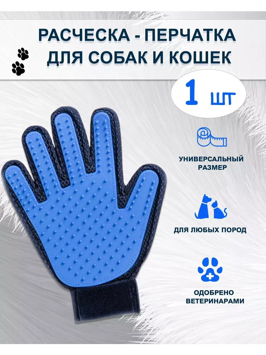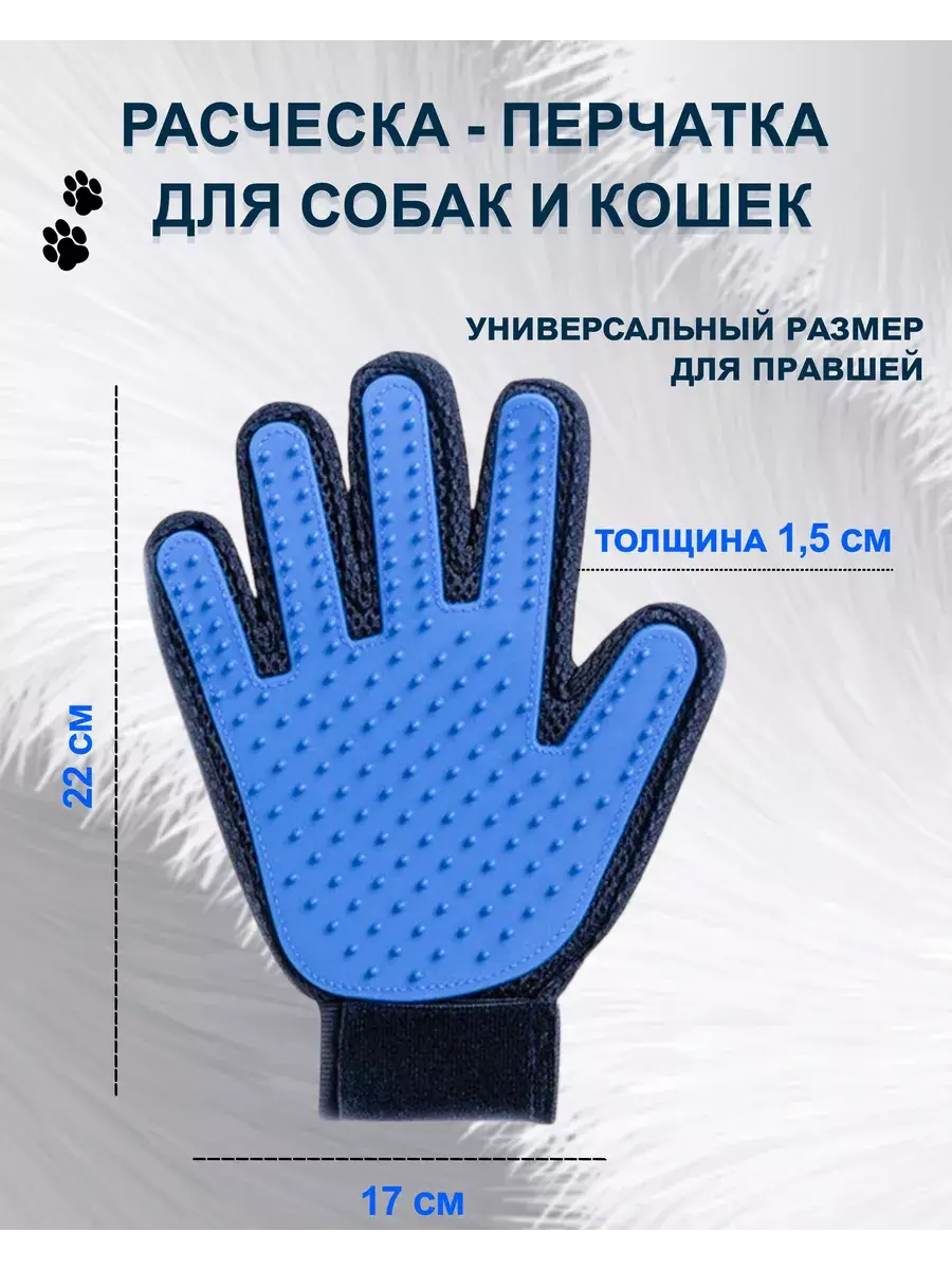 Гигиена важна не только для людей, но и для животных. Необходимо следить за их шерстью, вовремя очищая её от грязи и мусора. Некоторые домашние любимцы оставляют по квартире очень много шерсти. Это не только негигиенично, но и в некоторых случаях может стать причиной возникновения аллергии. Для ряда животных не приветствуется частое купание. В такой ситуации на помощь придёт расчёсывание. На выручку владельцам приходит перчатка для вычёсывания шерсти . Перчатка для груминга или как ее еще называют перчатка-пуходерка или просто пуходёрка, позволяет ухаживать за шерстью животного, удаляя грязь и опавшие волоски шерсти. Для ухода за шерстью достаточно легкими движениями по направлению роста шерсти провести перчаткой несколько раз, собирая опавшую шерсть. После того как расчёсывание окончено, шерсть следует аккуратно убрать с перчатки. Это совсем не сложно — достаточно приподнять её с одной стороны, и она легко отделится от поверхности. После этого нужно помыть приспособление в тёплой воде с добавлением мыла и как следует прополоскать. Рекомендуется регулярное использование перчатки, поскольку мягкие шипы массажируют кожу, улучшая кровообращение. Животные по-разному относятся к процессу вычёсывания шерсти: большинству он нравится, но есть и такие, которые категорически возражают против этого процесса. А вот чтобы их гладили и массажировали любят все – коты, собаки, хорьки и морские свинки. Поэтому массажная рукавица – идеальный вариант для любого питомца. Она доставит удовольствие и поможет в уходе: в квартире станет намного меньше шерсти. Шерсть животного начинает выглядеть гораздо лучше, при этом не травмируется кожа. При расчёсывании удаляются загрязнения. Также процедура помогает улучшить кровообращение. Преимущества и особенности: деликатно ухаживает за кожным покровом и шерстью животных; идеально подходит для ухода за кожей и шерстью щенков.