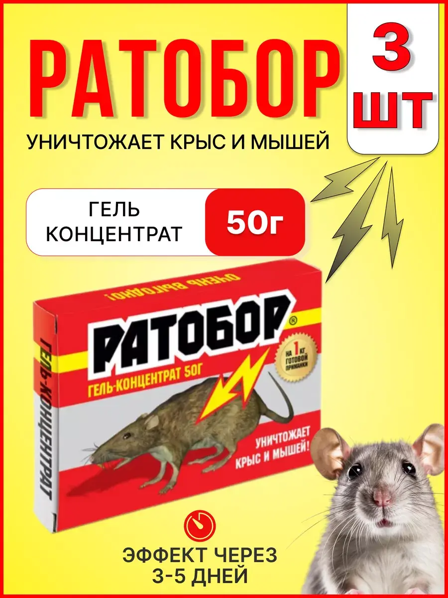 Отрава для мышей и крыс гель-концентрат Ратобор 50г -3шт