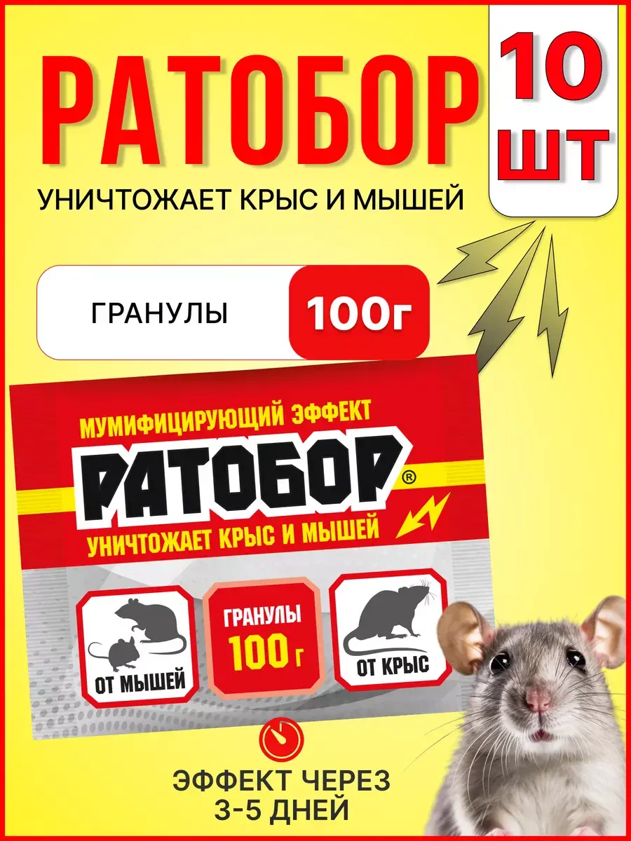 Отрава для мышей и крыс Гранулы Ратобор 100г -10шт