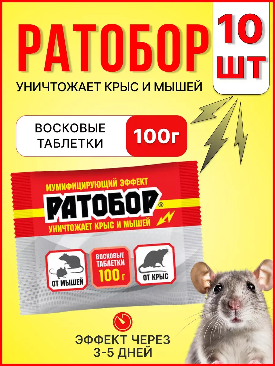 Отрава для мышей крыс восковые таблетки Ратобор 100г -10шт