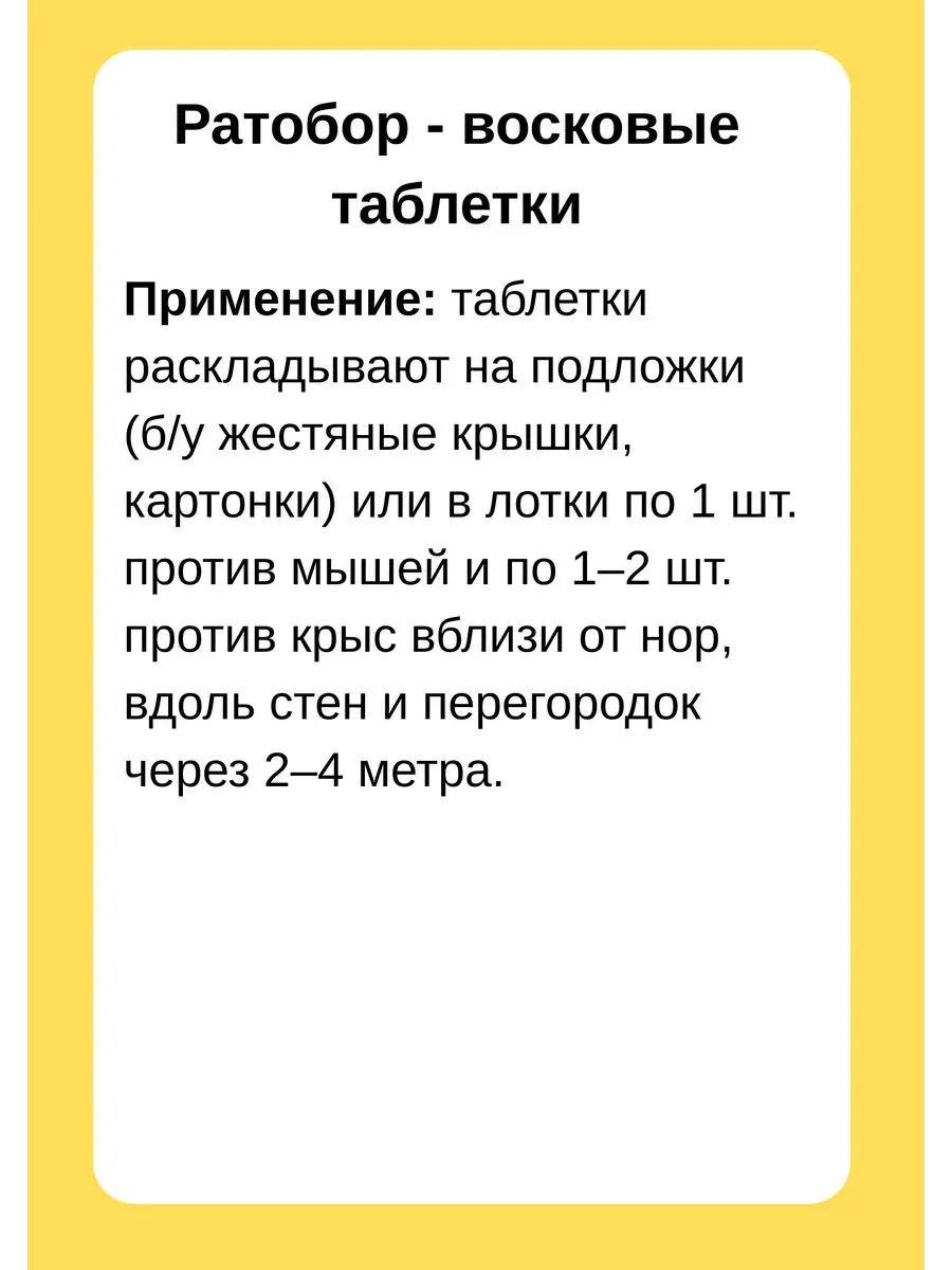 Отрава для мышей. Средство защиты грызунов Ратобор . Отрава предназначенная для крыс мышей. Приманка от грызунов имеет притягательный вкус и запах ,тем самым притягивая грызунов. Против крыс особенно эффективен Ратобор тесто-брикет. Отрава от мышей, известная также как средство от крыс и мышей, является эффективным средством борьбы с грызунами в доме. Это особенно полезно для частных домов, где присутствие мышей и крыс может быть особо проблематичным. Крысиная смерть - это яд, применяемое для уничтожения грызунов. Оно обеспечивает быстрый и безболезненный способ избавления от вредителей. Смерть грызунам отрава является эффективной альтернативой другим способам борьбы с вредителями, таким как мышеловки или ловушки. Приманка для крыс и мышей представляет собой привлекательное средство, разработанное для привлечения и устранения грызунов. Она может быть размещена в мышеловках или капканах для улова и уничтожения грызунов. Такая приманка чистит дом от крыс и предотвращает их повторное появление. Отрава от грызунов с мумифицирующим эффектом является еще одним вариантом применения яда для уничтожения мышей и крыс. Она обеспечивает не только быстрое и безболезненное истощение вредителей, но и мумификацию их тел. Это позволяет уменьшить мертвый запах и риск возникновения инфекций от грызунов.В целом, применение средств от крыс и мышей в частном доме является важным аспектом поддержания чистоты и гигиены. Выведение грызунов из дома помогает предотвратить повреждение имущества и возможные риски для здоровья людей и домашних животных. Для них он оказывается привлекательнее другого корма, и даже если поблизости есть иные источники пищи, крысы выбирают приманку. Тесто-брикет изготовлен в виде небольших таблеток, каждая из которых находится в индивидуальной упаковке. Оболочку нужно снять и поместить приманку в местах, привлекательных для крыс.
